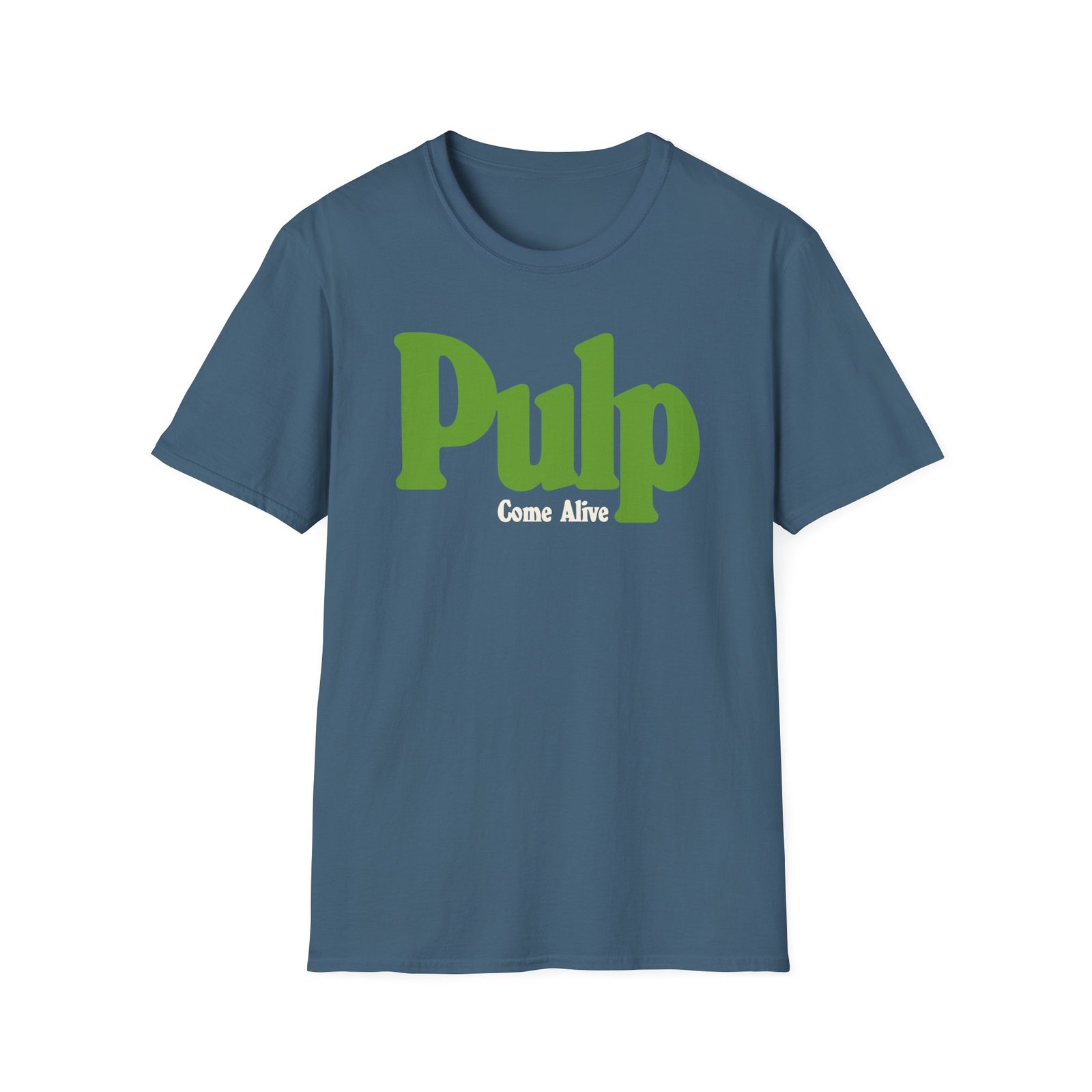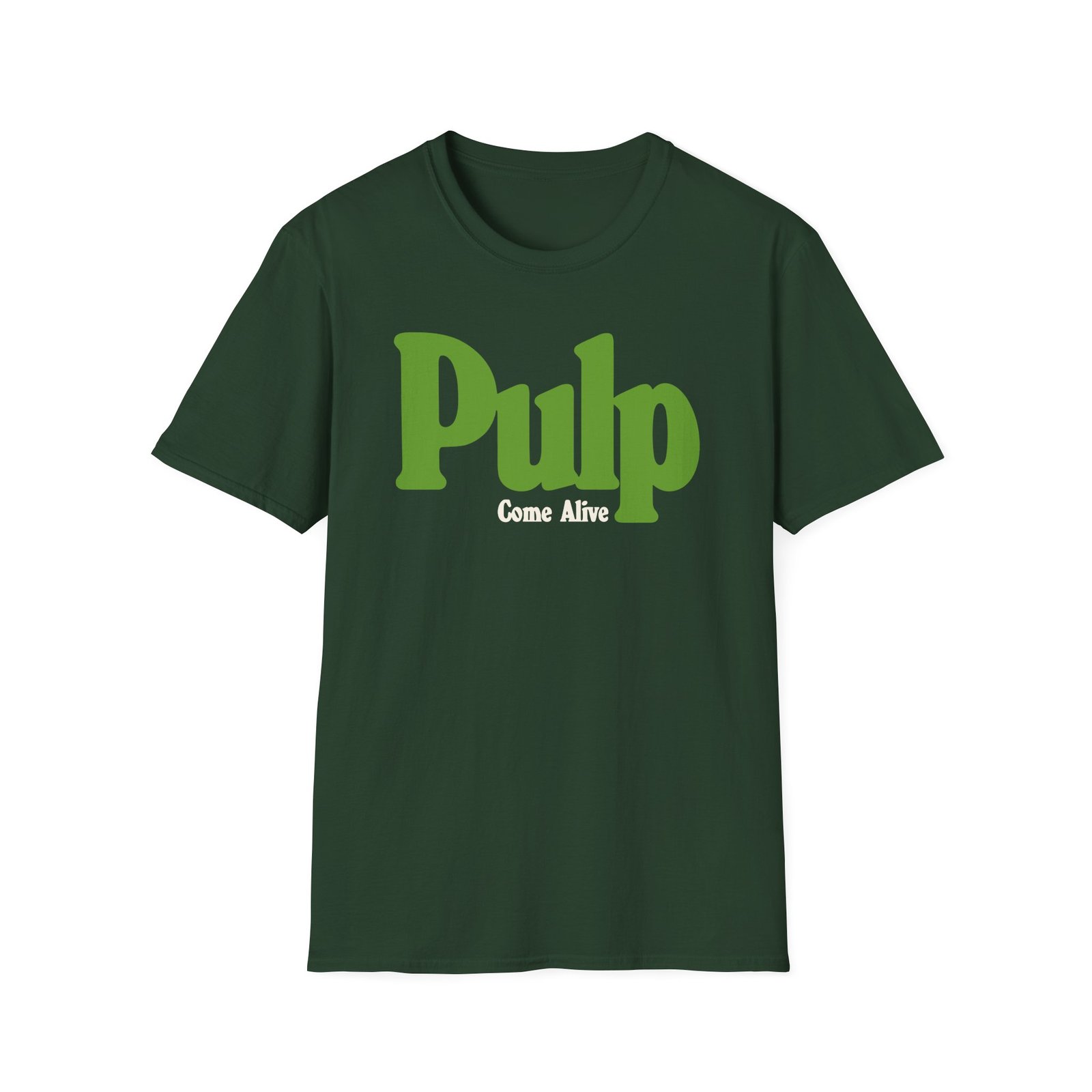 The Pulp Come Alive unisex soft-style t-shirt puts a new spin on casual comfort. Made from very soft materials, this tee is 100% cotton for solid colors. Heather colors and sports grey include polyester. The shoulders have twill tape for improved durability. There are no side seams. The collar is made with ribbed knitting to prevent curling damage.