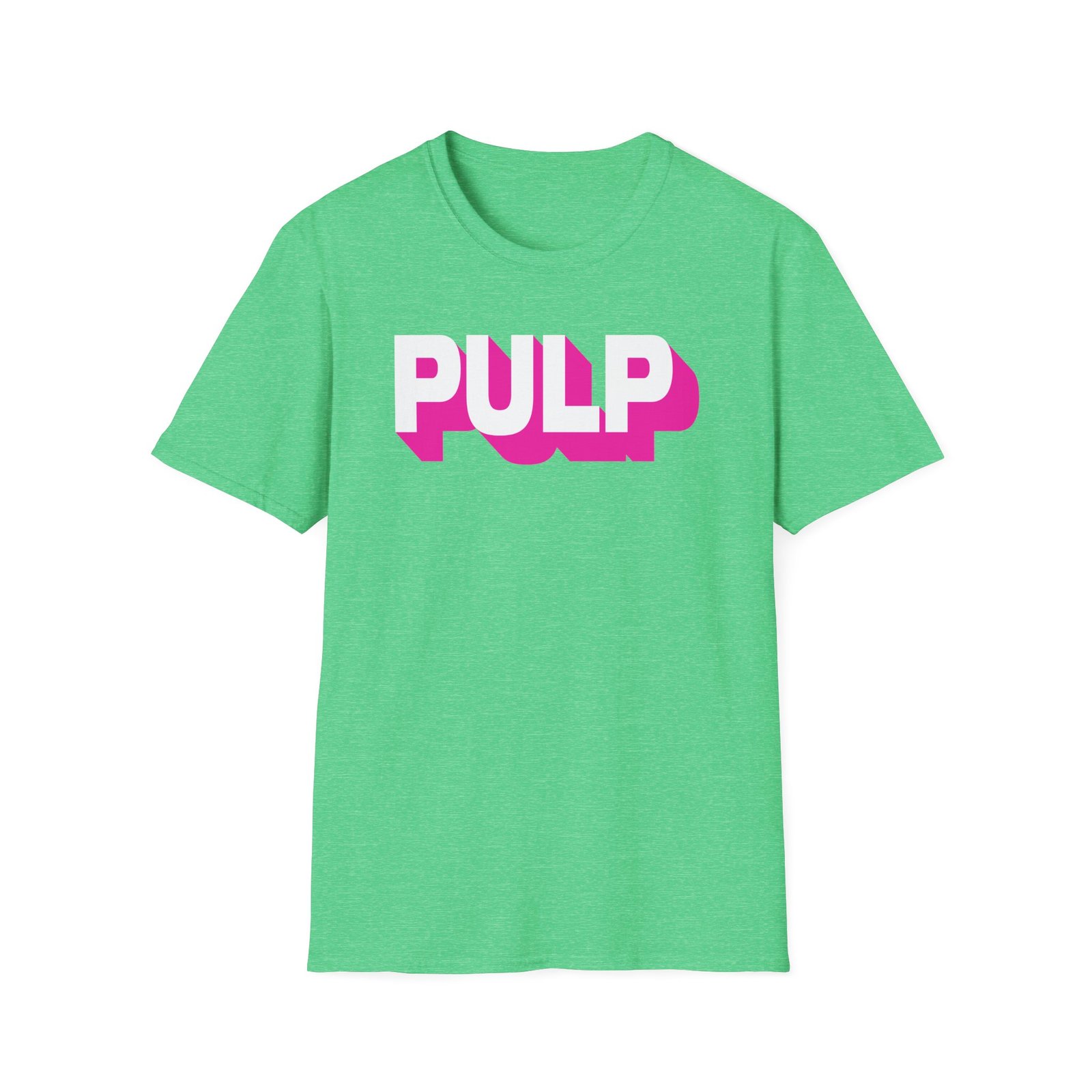 The Pulp Logo unisex soft-style t-shirt puts a new spin on casual comfort. Made from very soft materials, this tee is 100% cotton for solid colors. Heather colors and sports grey include polyester. The shoulders have twill tape for improved durability. There are no side seams. The collar is made with ribbed knitting to prevent curling damage.