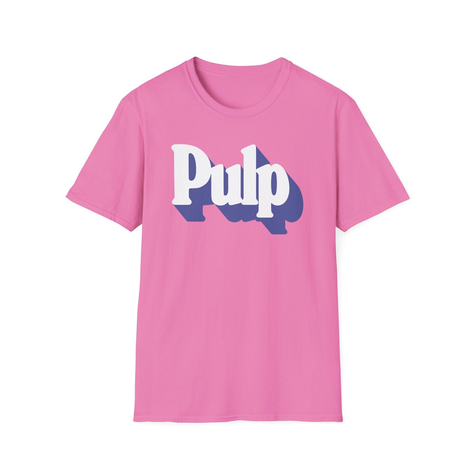The Pulp Shadow Logo unisex soft-style t-shirt puts a new spin on casual comfort. Made from very soft materials, this tee is 100% cotton for solid colors. Heather colors and sports grey include polyester. The shoulders have twill tape for improved durability. There are no side seams. The collar is made with ribbed knitting to prevent curling damage.