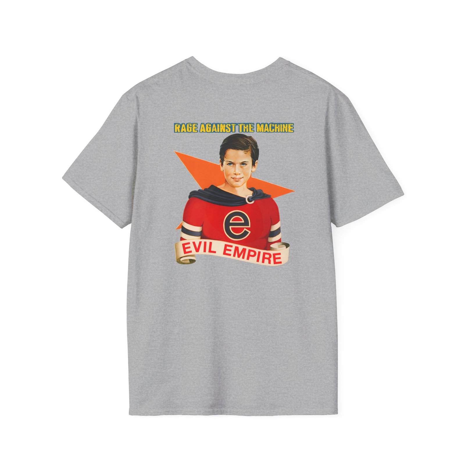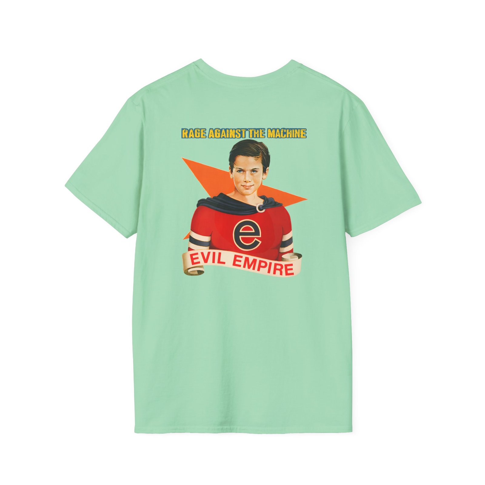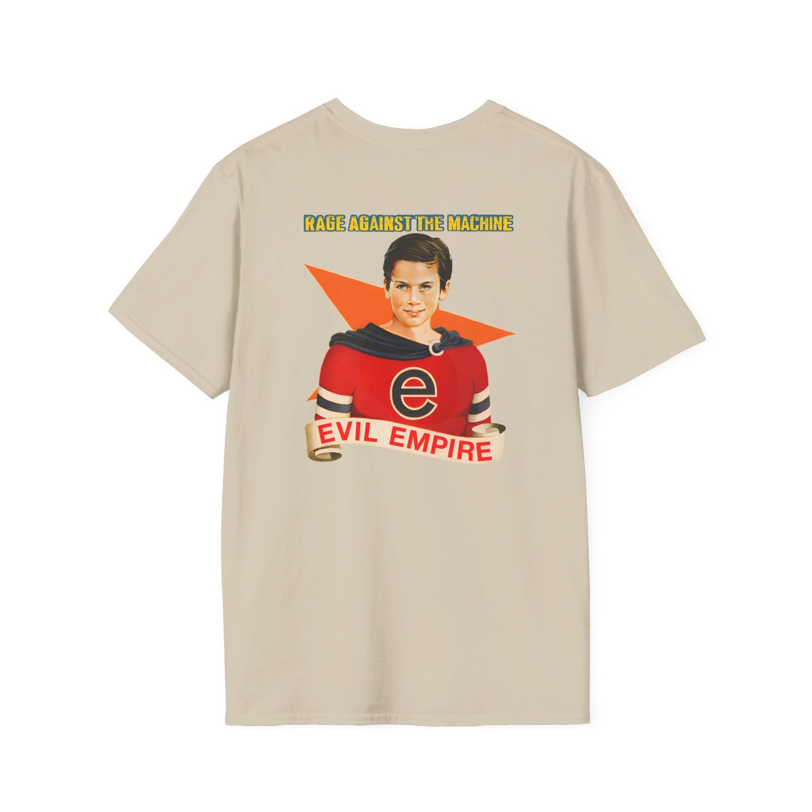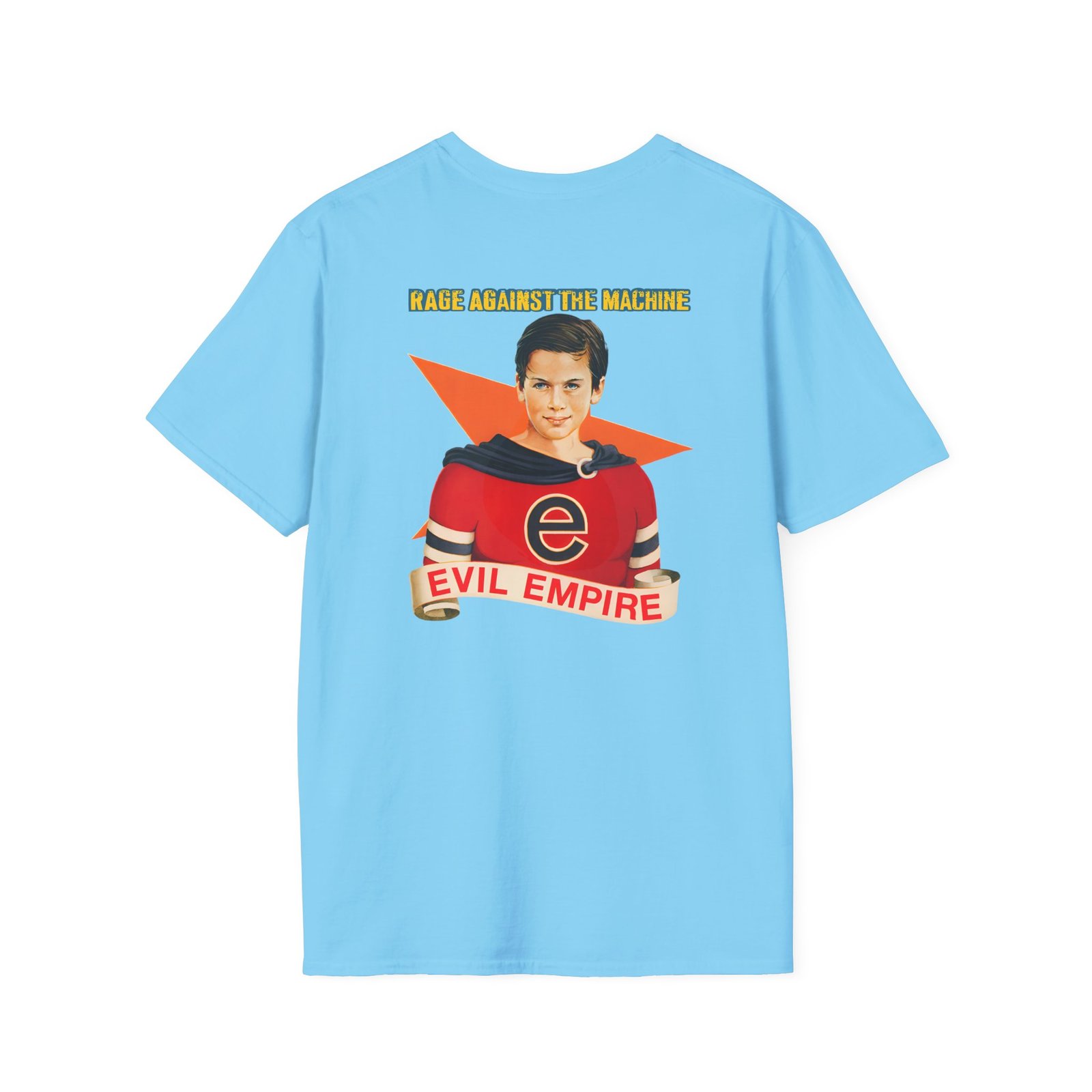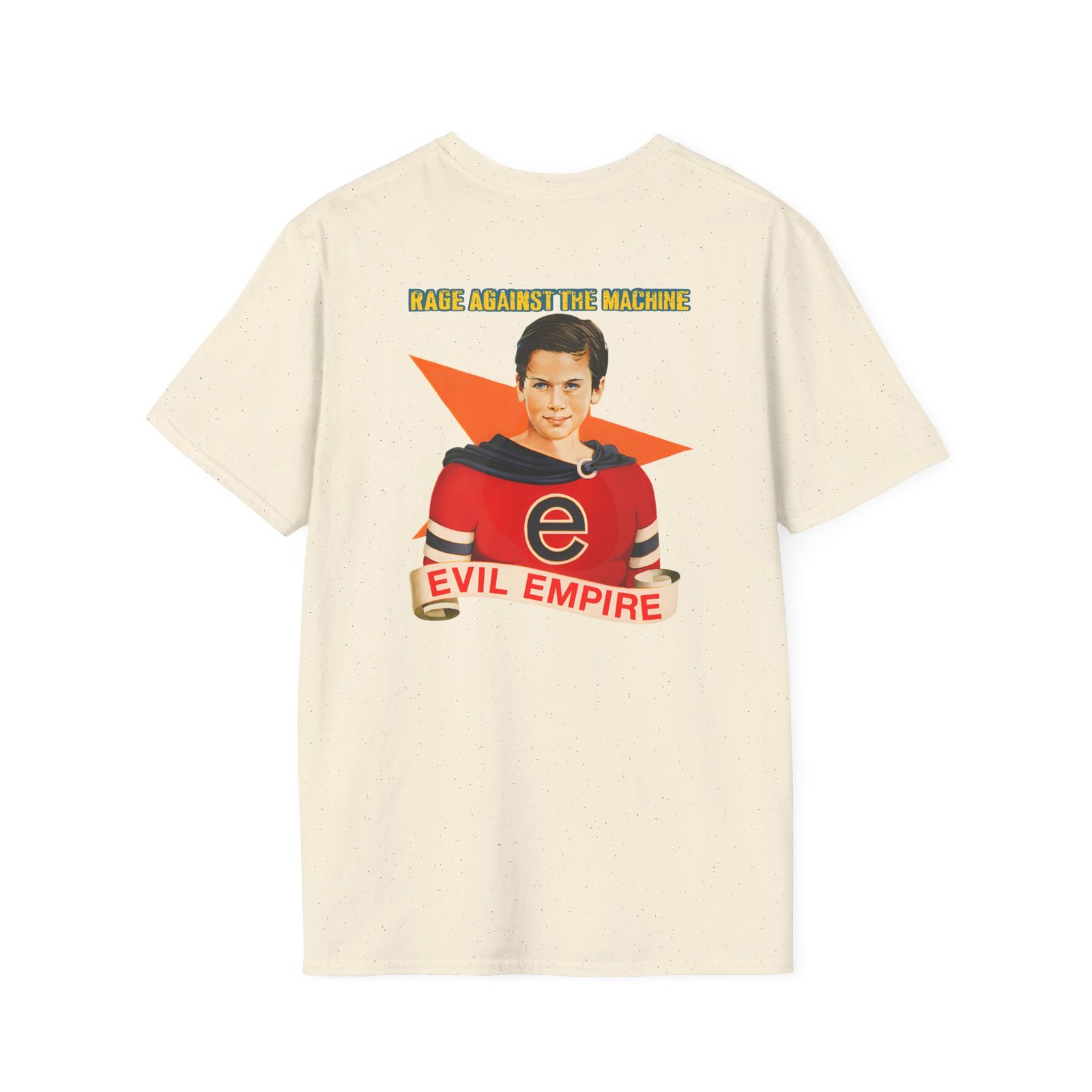 The Rage Against the Machine Evil Boy unisex soft-style t-shirt puts a new spin on casual comfort. Made from very soft materials, this tee is 100% cotton for solid colors. Heather colors and sports grey include polyester. The shoulders have twill tape for improved durability. There are no side seams. The collar is made with ribbed knitting to prevent curling damage.