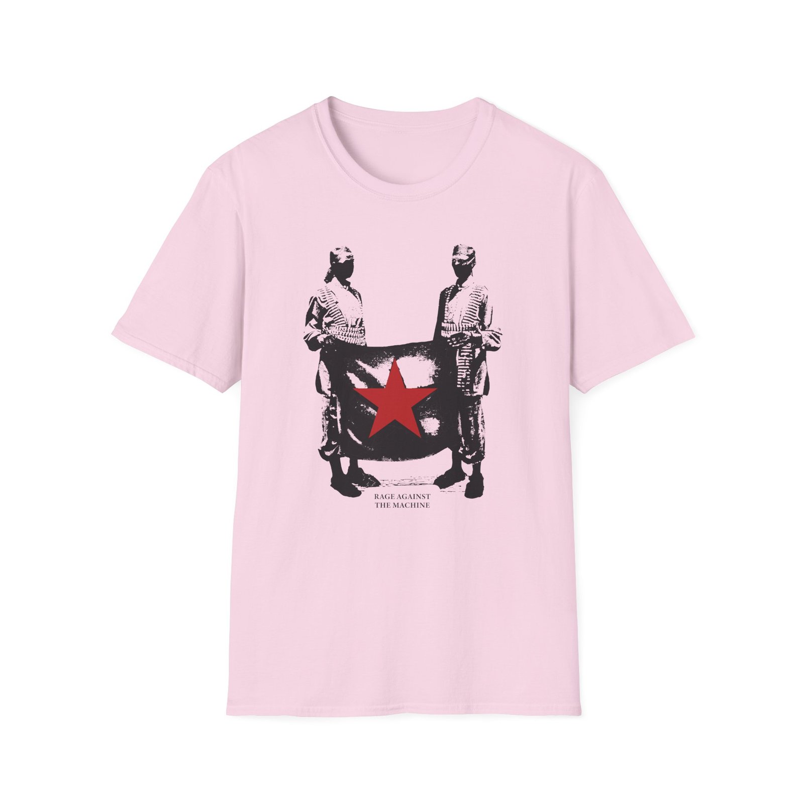 The Rage Against the Machine Flagbearer unisex soft-style t-shirt puts a new spin on casual comfort. Made from very soft materials, this tee is 100% cotton for solid colors. Heather colors and sports grey include polyester. The shoulders have twill tape for improved durability. There are no side seams. The collar is made with ribbed knitting to prevent curling damage.