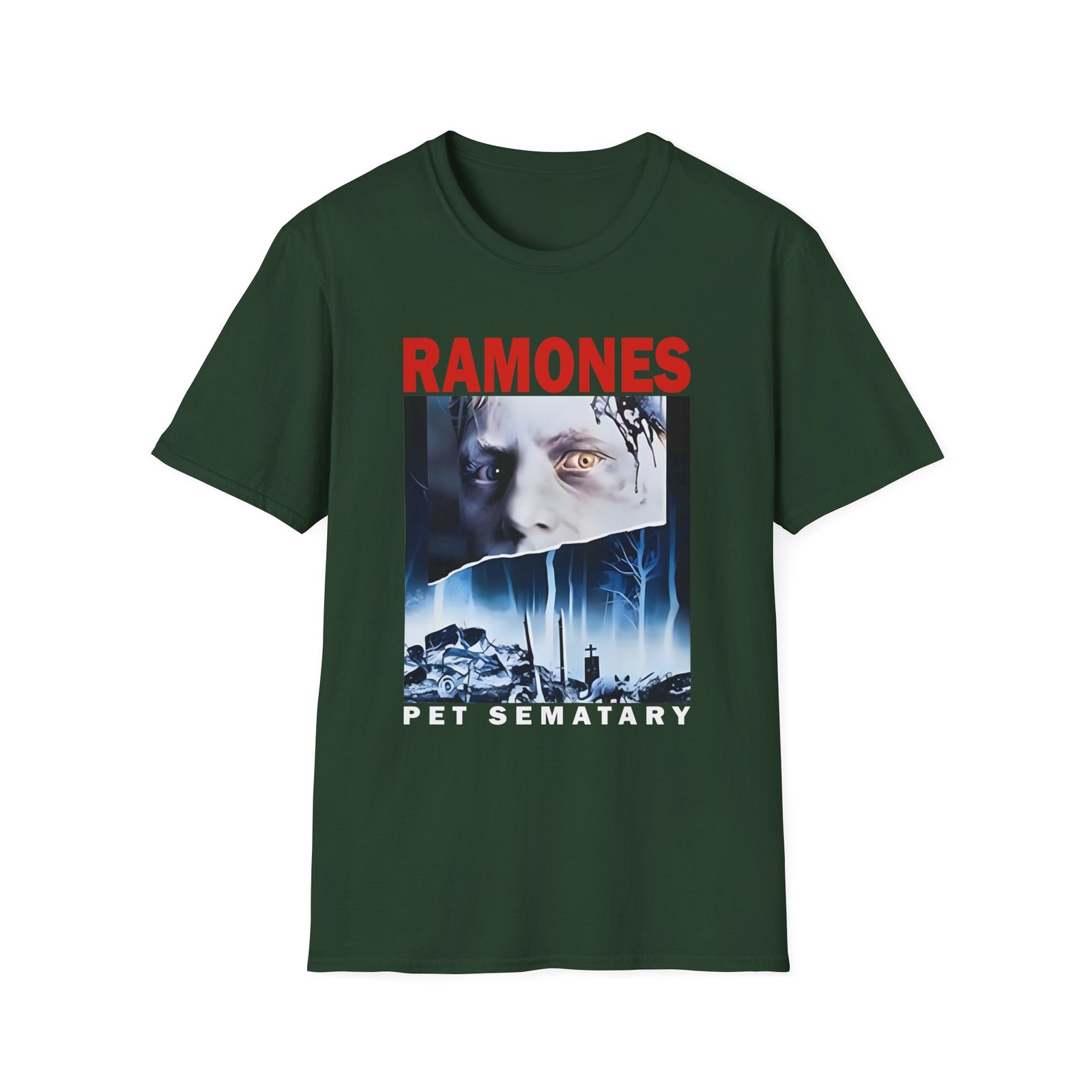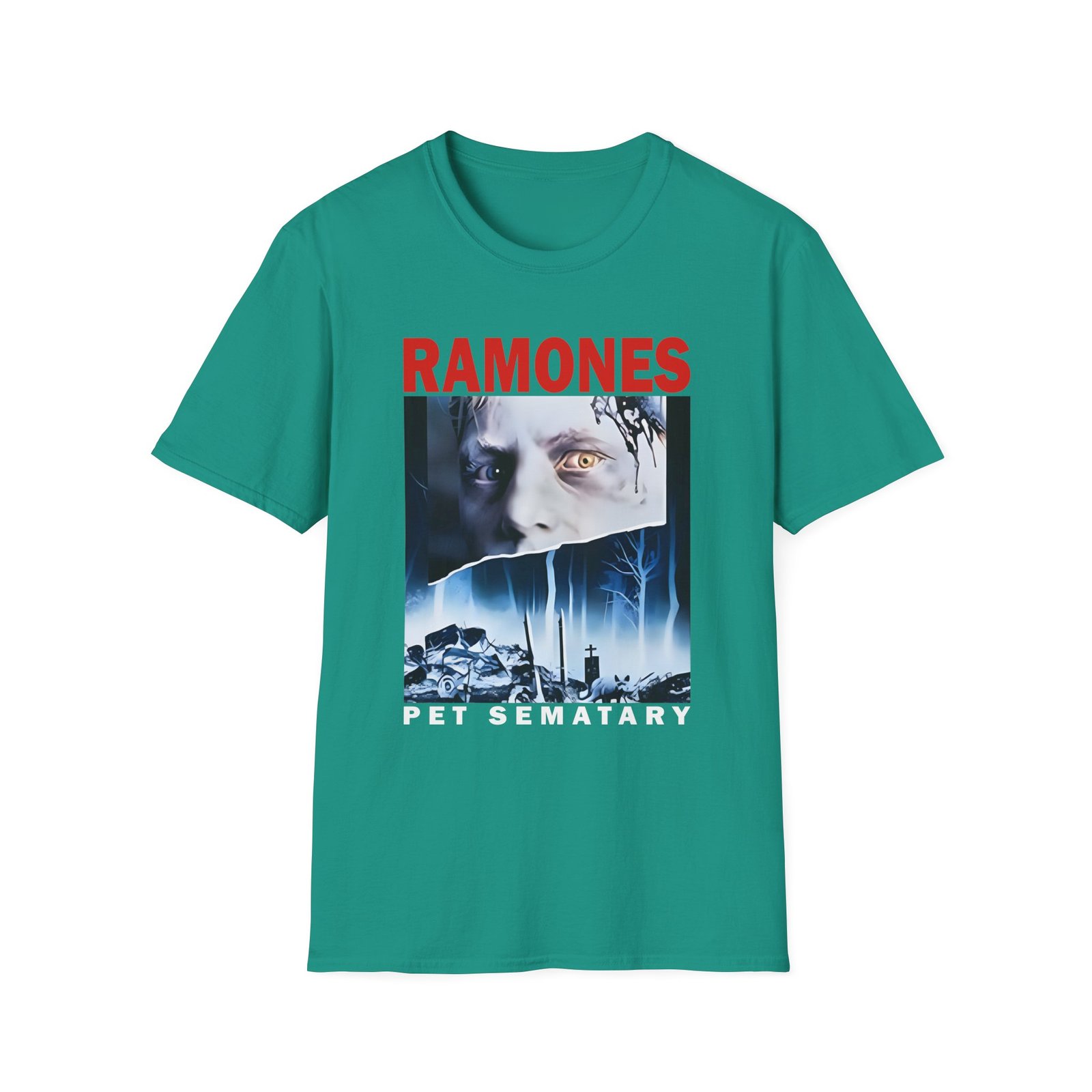 The Ramones Pet Sematary T Shirt unisex soft-style t-shirt puts a new spin on casual comfort. Made from very soft materials, this tee is 100% cotton for solid colors. Heather colors and sports grey include polyester. The shoulders have twill tape for improved durability. There are no side seams. The collar is made with ribbed knitting to prevent curling damage.