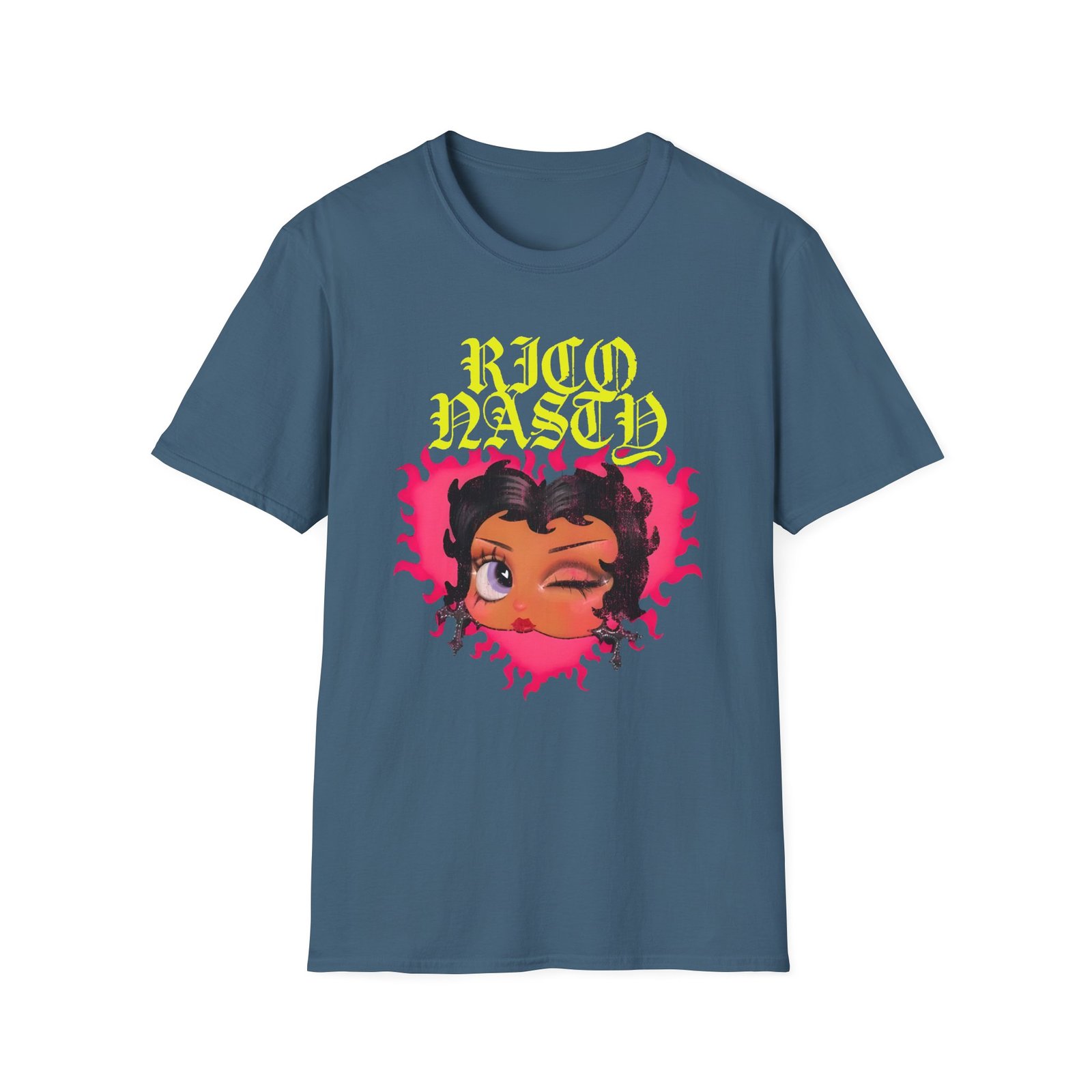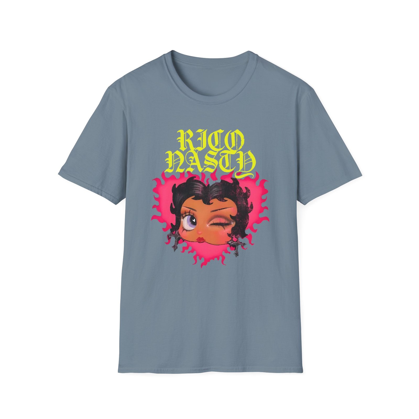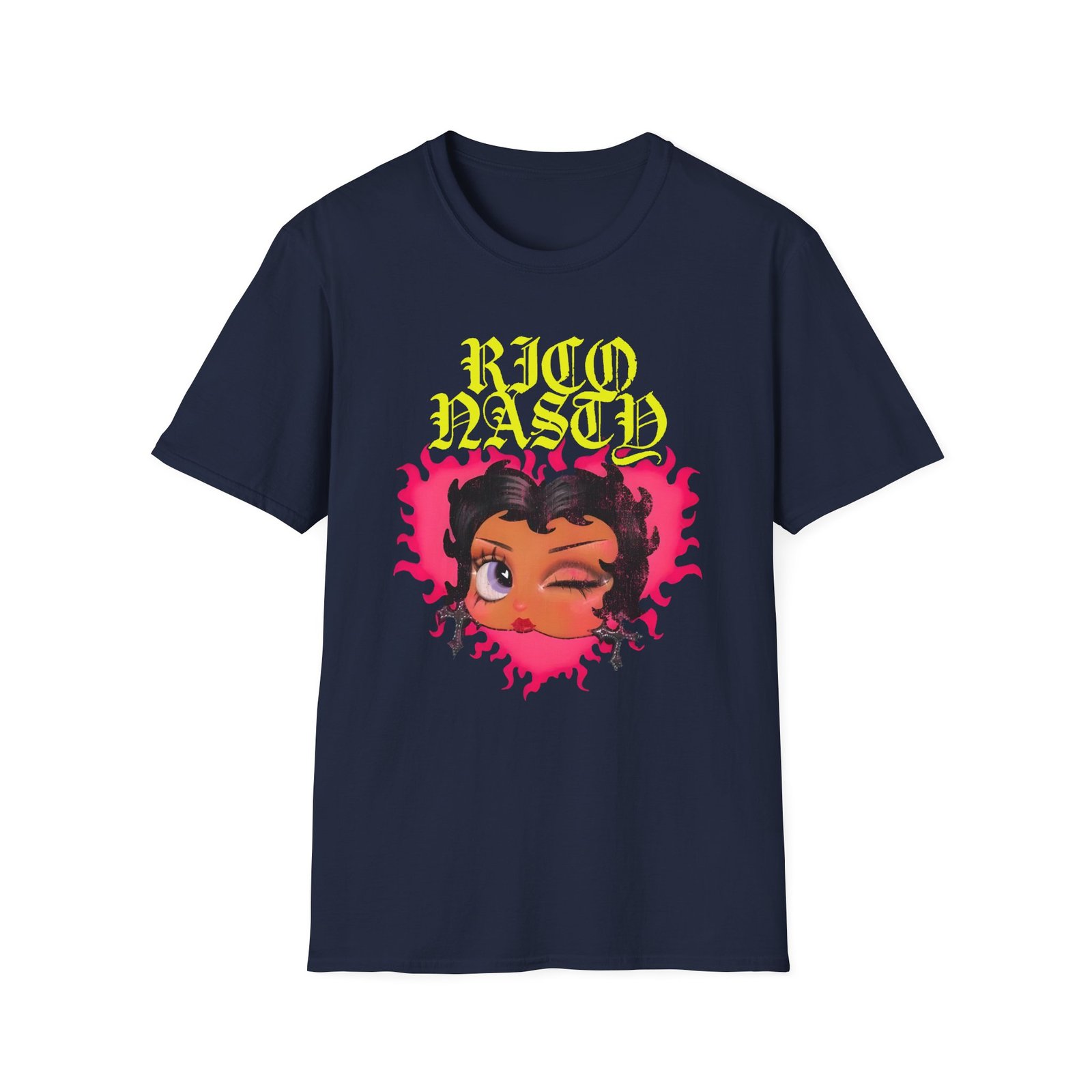 The Rico Nasty Rico Boop unisex soft-style t-shirt puts a new spin on casual comfort. Made from very soft materials, this tee is 100% cotton for solid colors. Heather colors and sports grey include polyester. The shoulders have twill tape for improved durability. There are no side seams. The collar is made with ribbed knitting to prevent curling damage.
