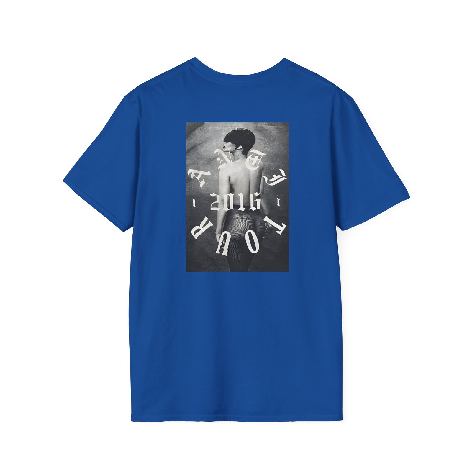 The Rihanna Anti Tour Unisex Softstyle T-Shirt puts a new spin on casual comfort. Made from very soft materials, this tee is 100% cotton for solid colors. Heather colors and sports grey include polyester. The shoulders have twill tape for improved durability. There are no side seams. The collar is made with ribbed knitting to prevent curling damage.