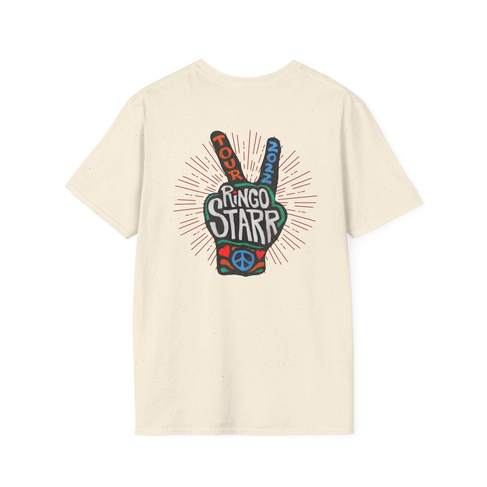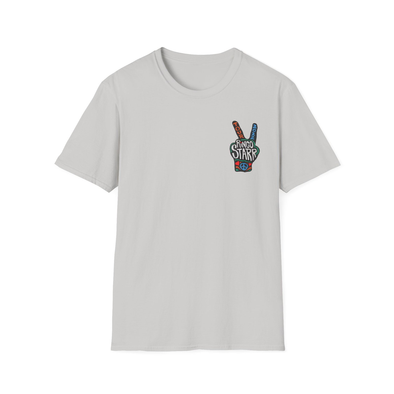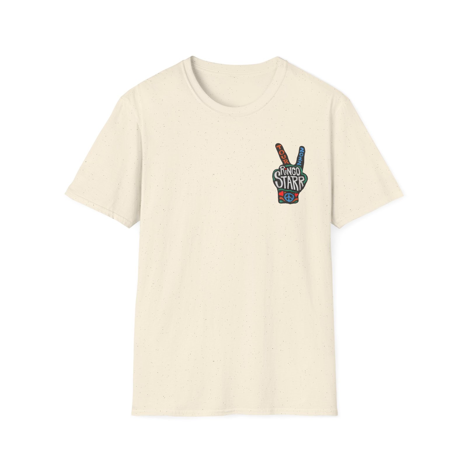 The Ringo Starr Peace Illustration unisex soft-style t-shirt puts a new spin on casual comfort. Made from very soft materials, this tee is 100% cotton for solid colors. Heather colors and sports grey include polyester. The shoulders have twill tape for improved durability. There are no side seams. The collar is made with ribbed knitting to prevent curling damage.