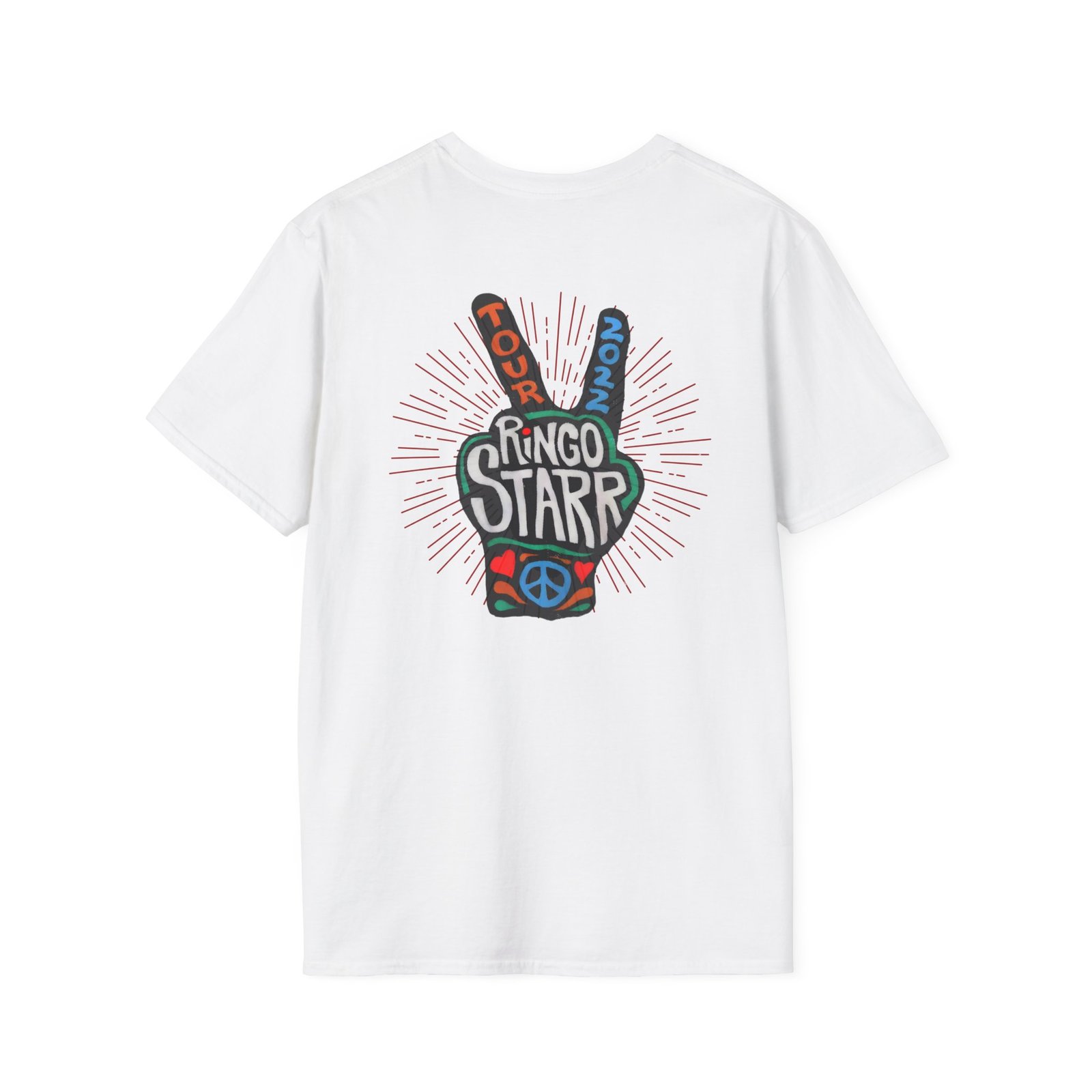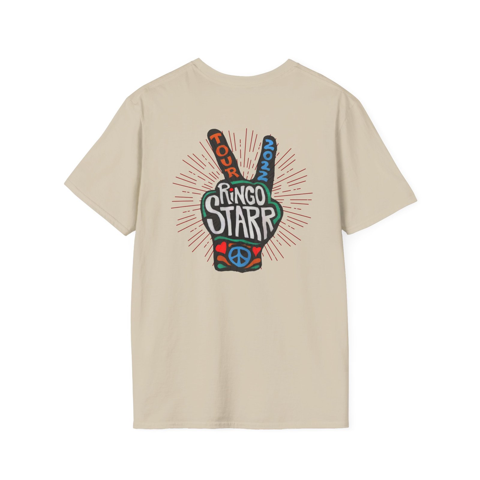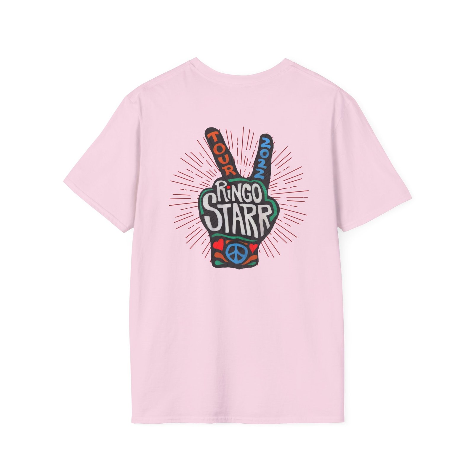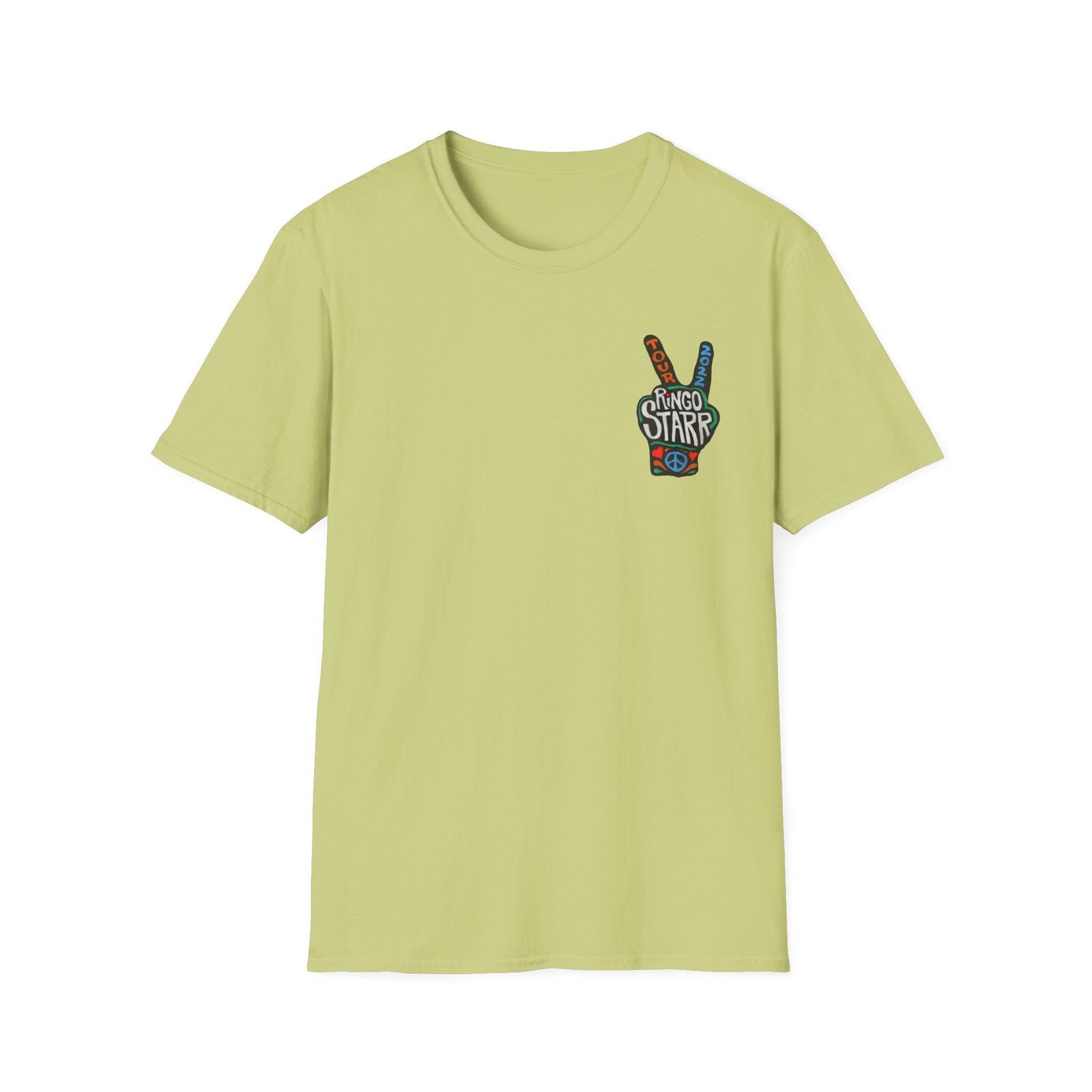 The Ringo Starr Peace Illustration unisex soft-style t-shirt puts a new spin on casual comfort. Made from very soft materials, this tee is 100% cotton for solid colors. Heather colors and sports grey include polyester. The shoulders have twill tape for improved durability. There are no side seams. The collar is made with ribbed knitting to prevent curling damage.