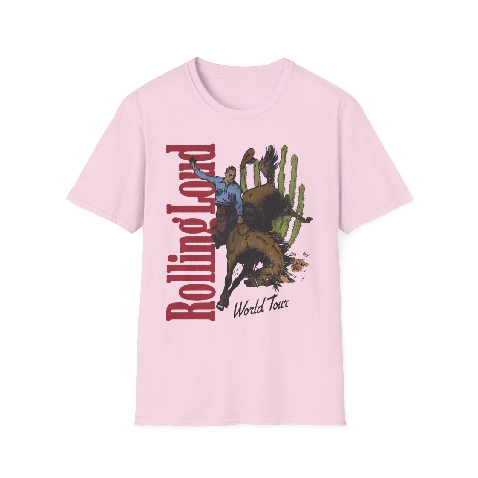 The Rolling Loud Rodeo World Tour unisex soft-style t-shirt puts a new spin on casual comfort. Made from very soft materials, this tee is 100% cotton for solid colors. Heather colors and sports grey include polyester. The shoulders have twill tape for improved durability. There are no side seams. The collar is made with ribbed knitting to prevent curling damage.