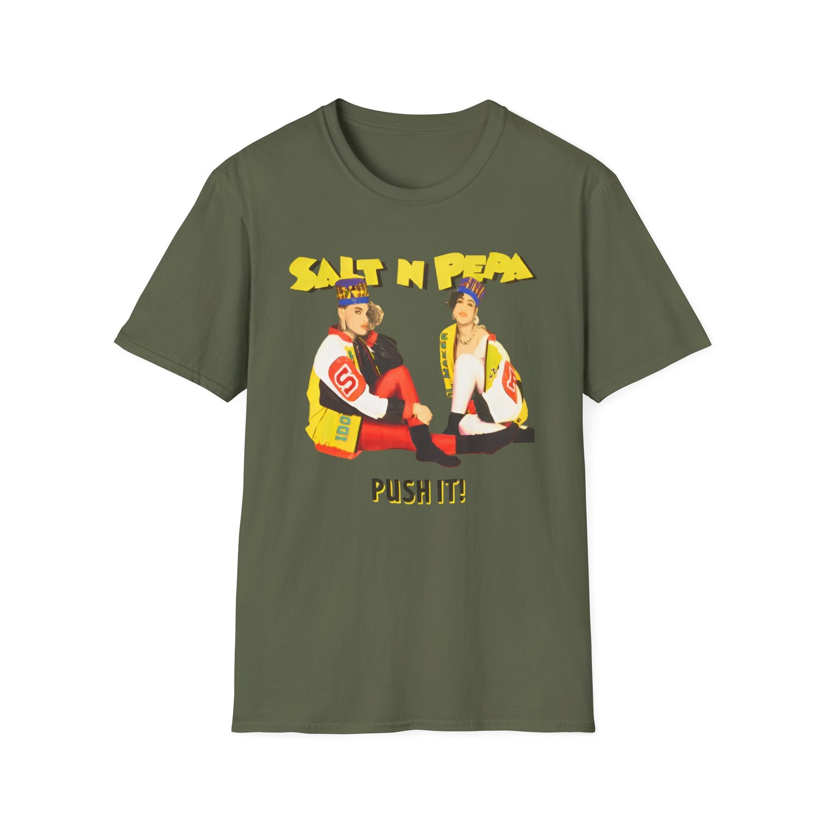 The Salt N Pepa unisex soft-style t-shirt puts a new spin on casual comfort. Made from very soft materials, this tee is 100% cotton for solid colors. Heather colors and sports grey include polyester. The shoulders have twill tape for improved durability. There are no side seams. The collar is made with ribbed knitting to prevent curling damage.