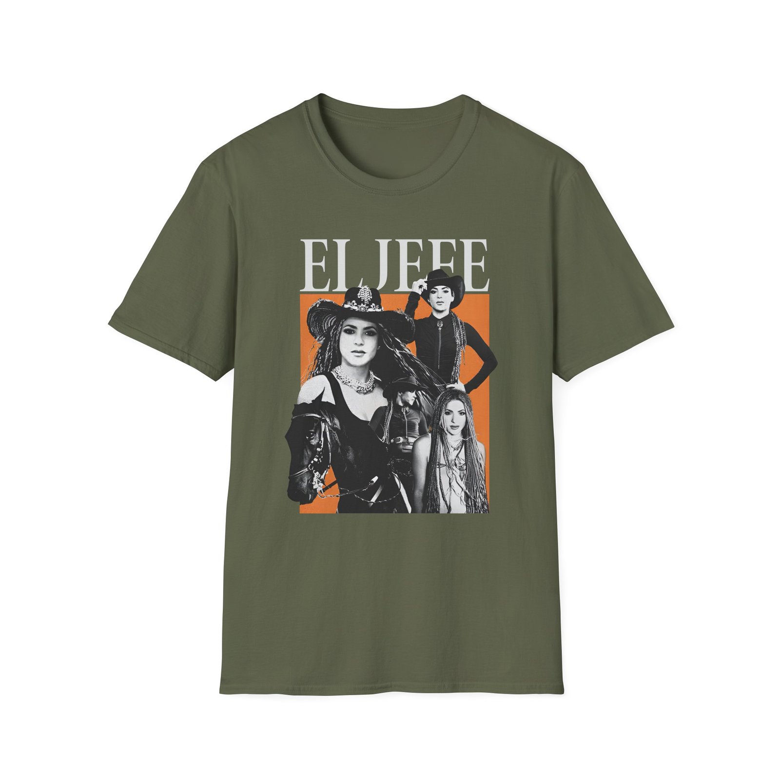 The Shakira El Jefe unisex soft-style t-shirt puts a new spin on casual comfort. Made from very soft materials, this tee is 100% cotton for solid colors. Heather colors and sports grey include polyester. The shoulders have twill tape for improved durability. There are no side seams. The collar is made with ribbed knitting to prevent curling damage.