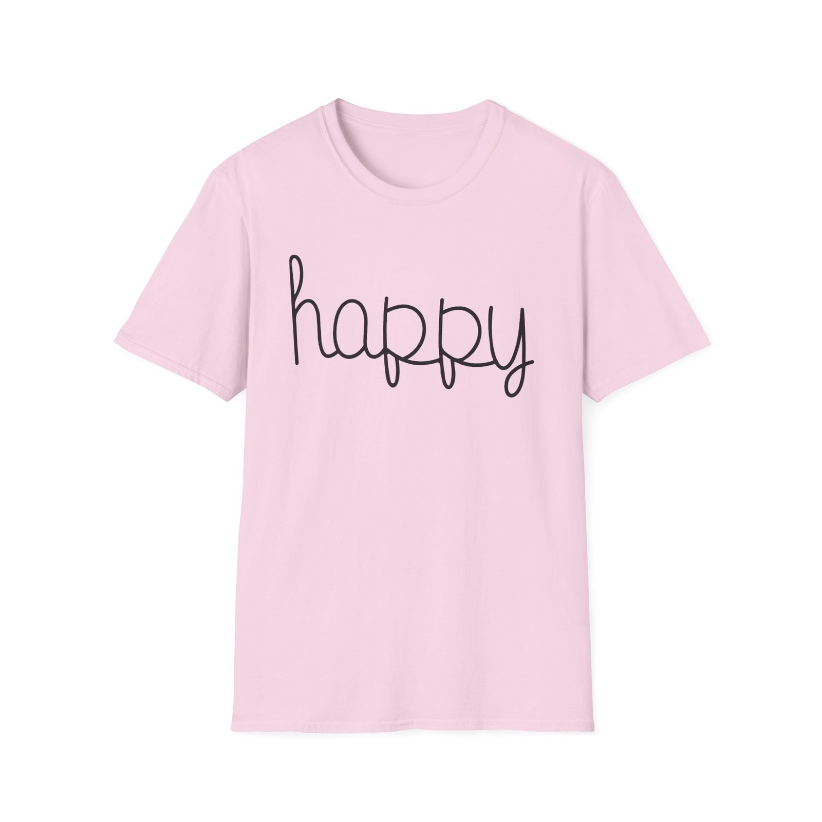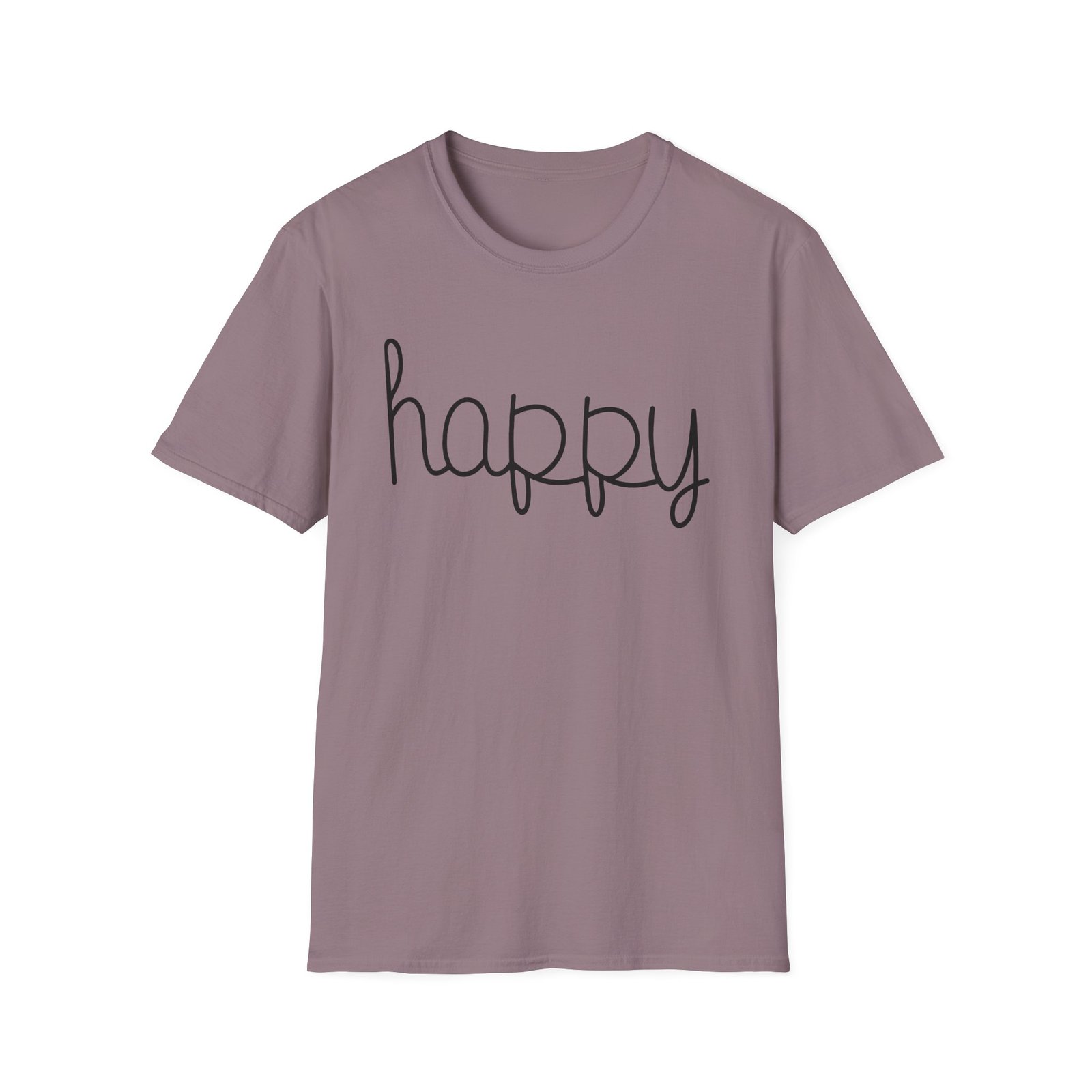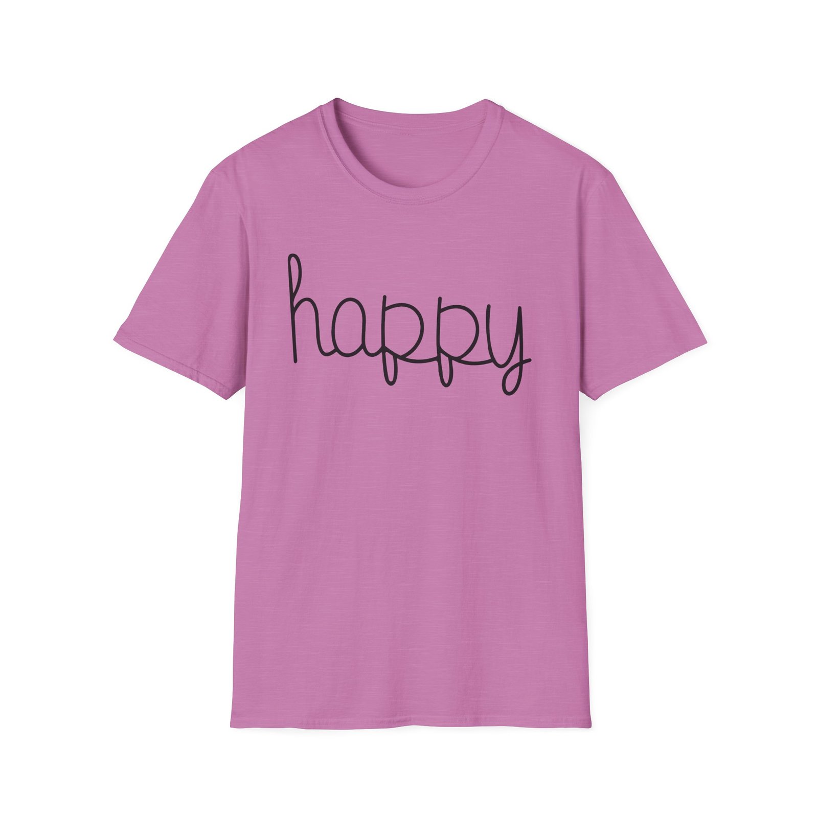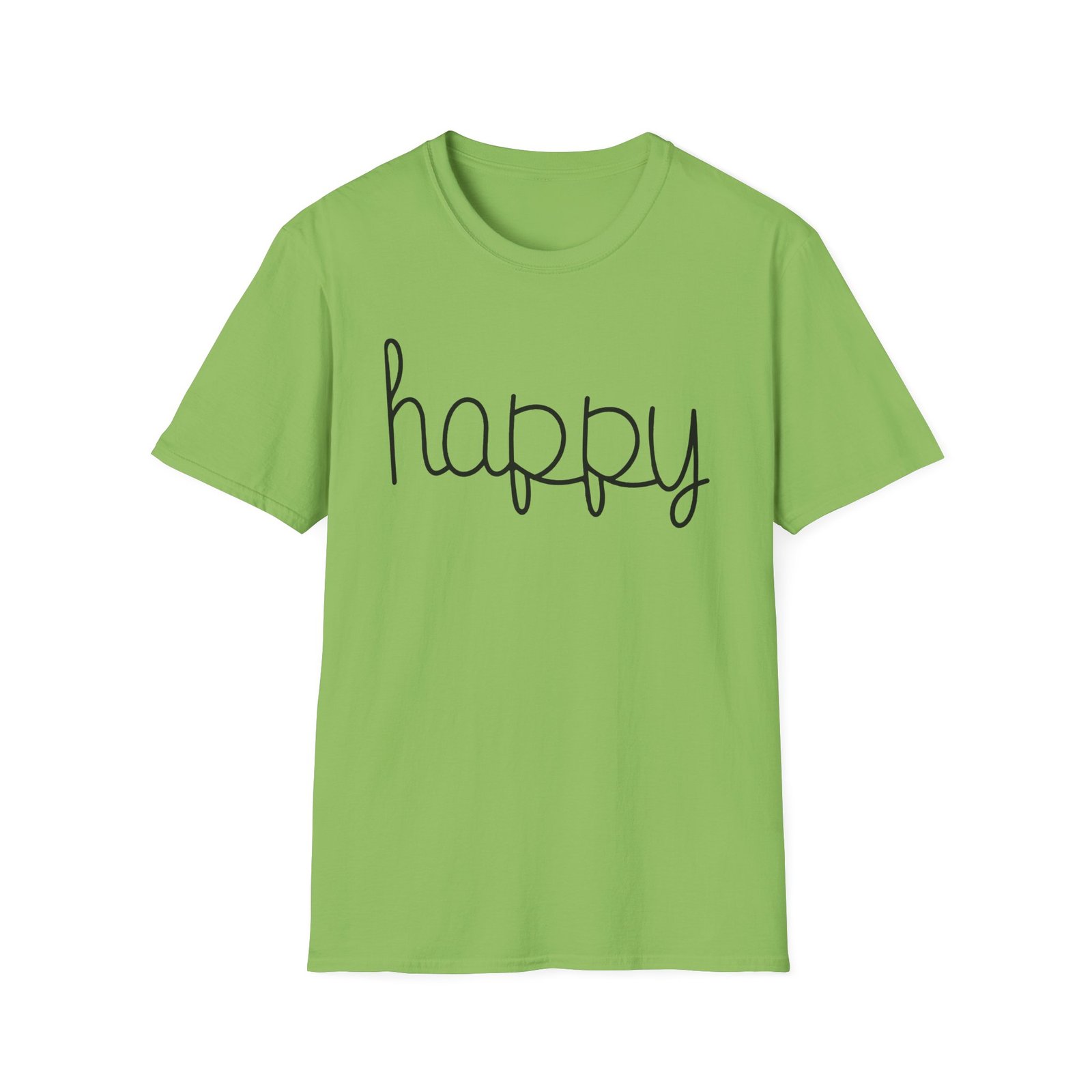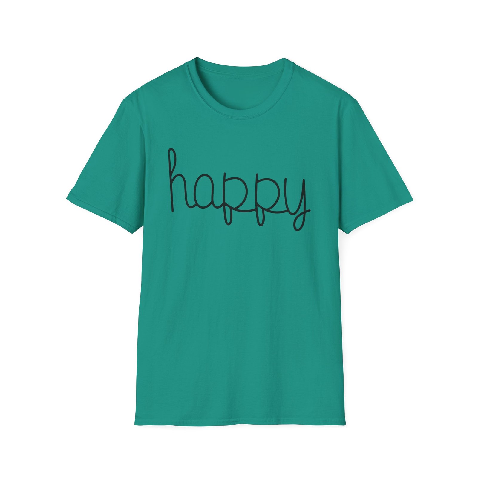 Introducing a Shubble happy unisex softstyle t-shirt that radiates positivity and comfort. The cheerful design features the word ‘happy’ in an inviting script, making it a perfect garment for spreading joy. Crafted from 100% ring-spun cotton, this lightweight tee offers a blissful wearing experience throughout the year. Its classic fit and crew neckline make it suitable for any occasion, whether formal gatherings or casual outings. Ideal for anyone who appreciates comfort and wants to express their joyful side, this shirt also makes a thoughtful gift for birthdays, holidays, or just to cheer someone up. Celebrate special moments and everyday happiness with this versatile tee.