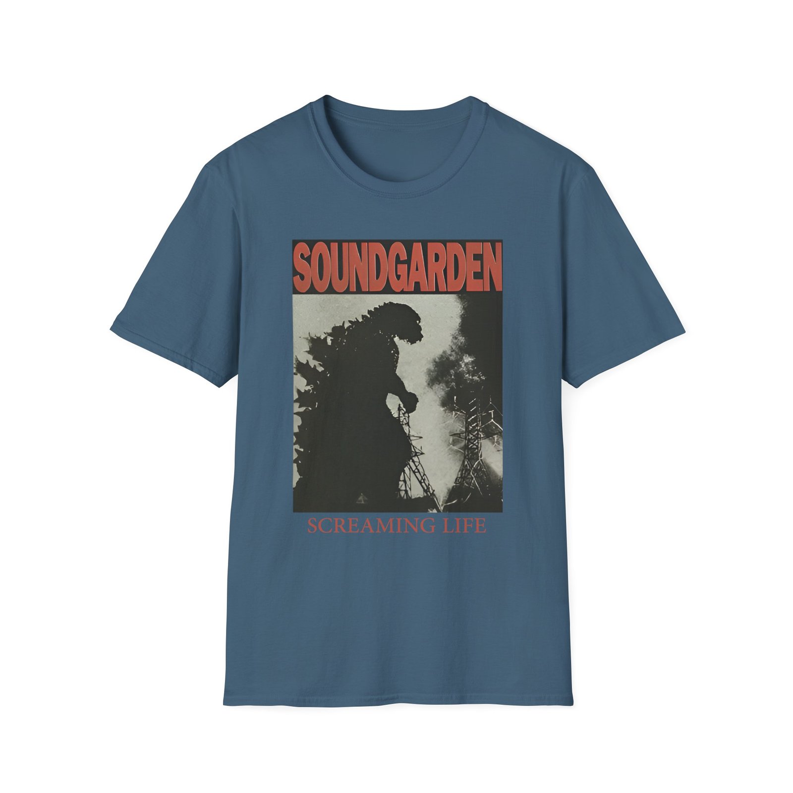 The Soundgarden Screaming Life unisex soft-style t-shirt puts a new spin on casual comfort. Made from very soft materials, this tee is 100% cotton for solid colors. Heather colors and sports grey include polyester. The shoulders have twill tape for improved durability. There are no side seams. The collar is made with ribbed knitting to prevent curling damage.