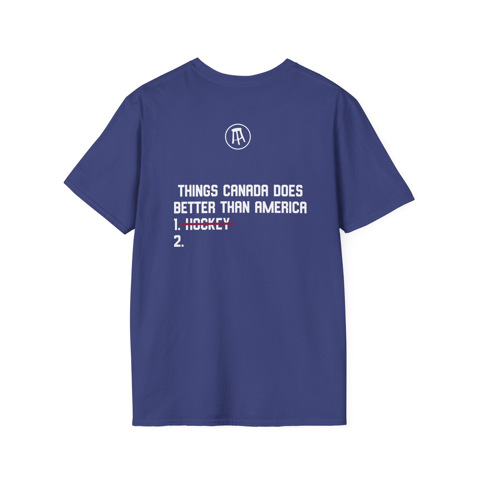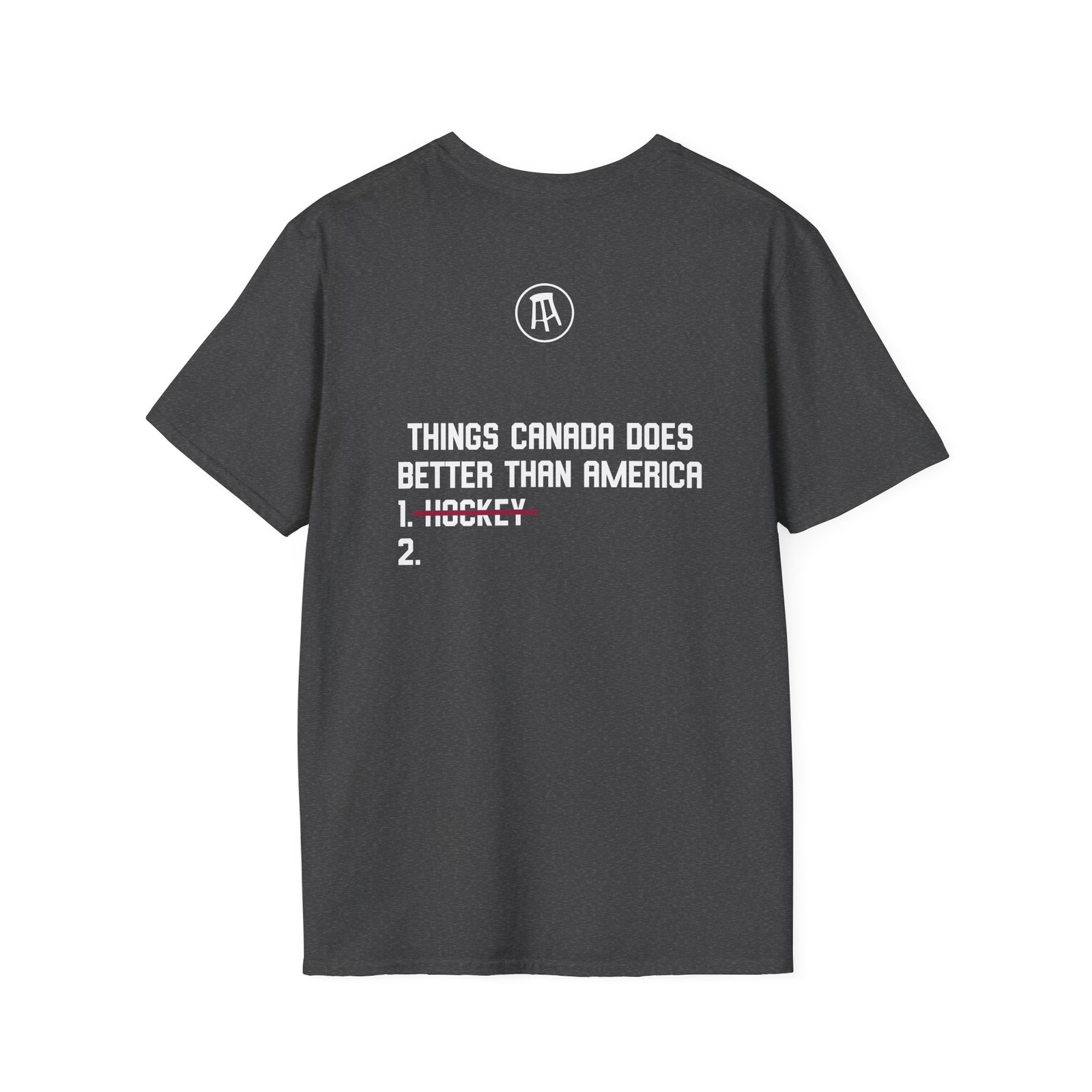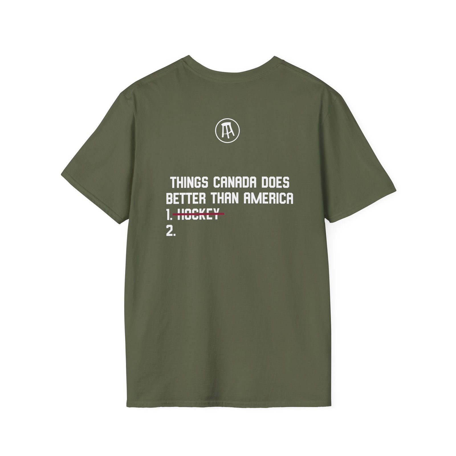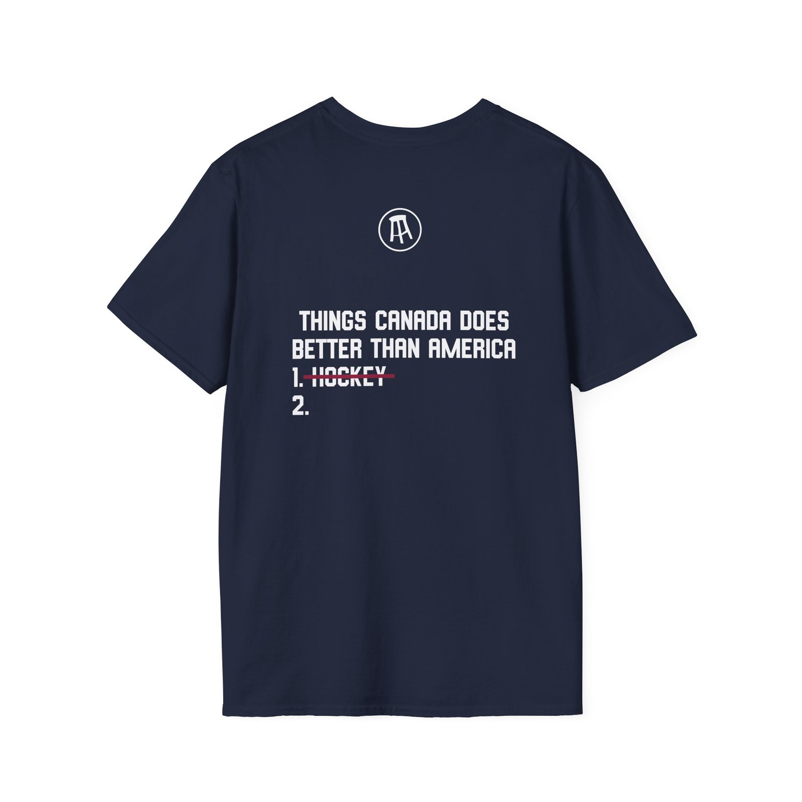The Spittin Chiclets Us Hockey unisex soft-style t-shirt puts a new spin on casual comfort. Made from very soft materials, this tee is 100% cotton for solid colors. Heather colors and sports grey include polyester. The shoulders have twill tape for improved durability. There are no side seams. The collar is made with ribbed knitting to prevent curling damage.