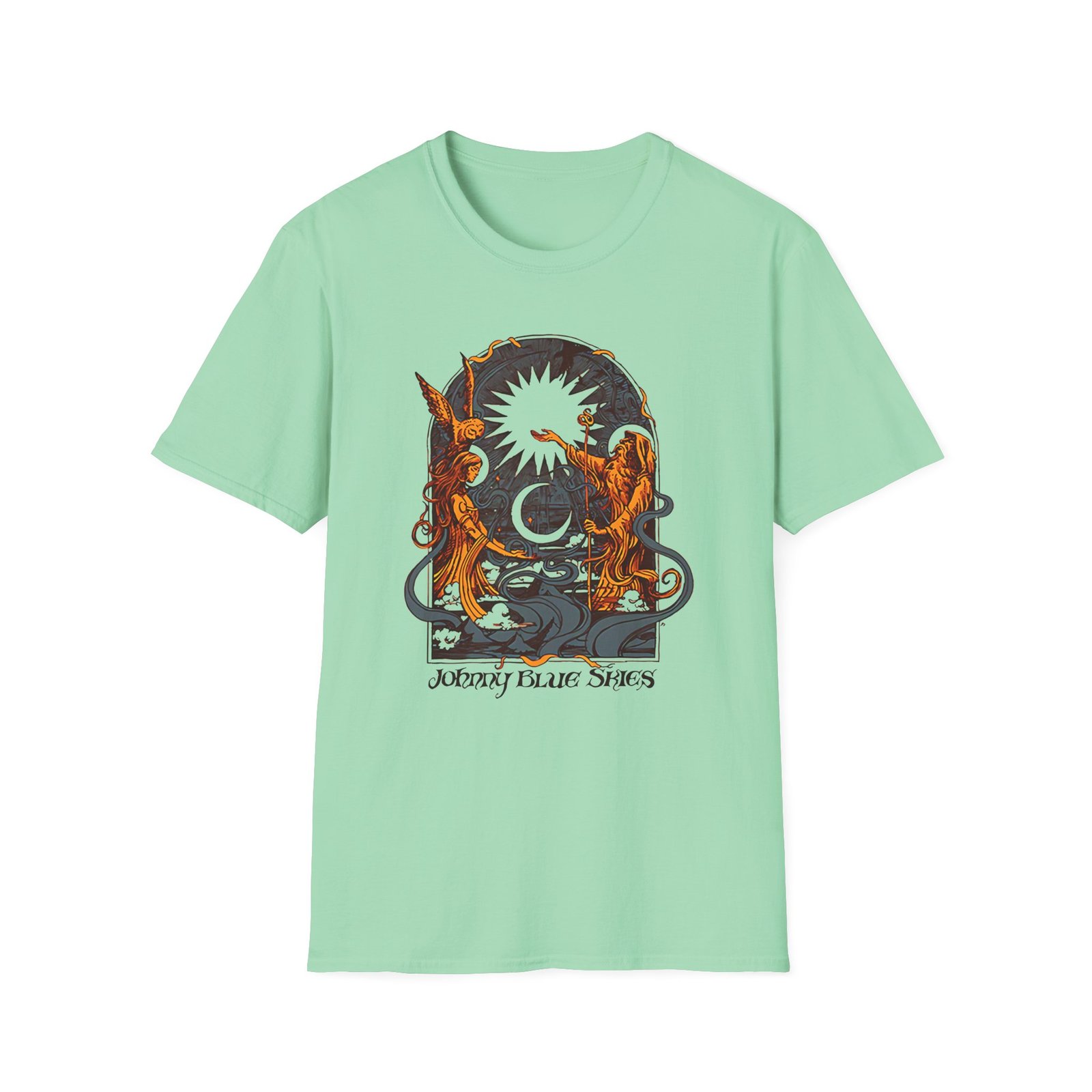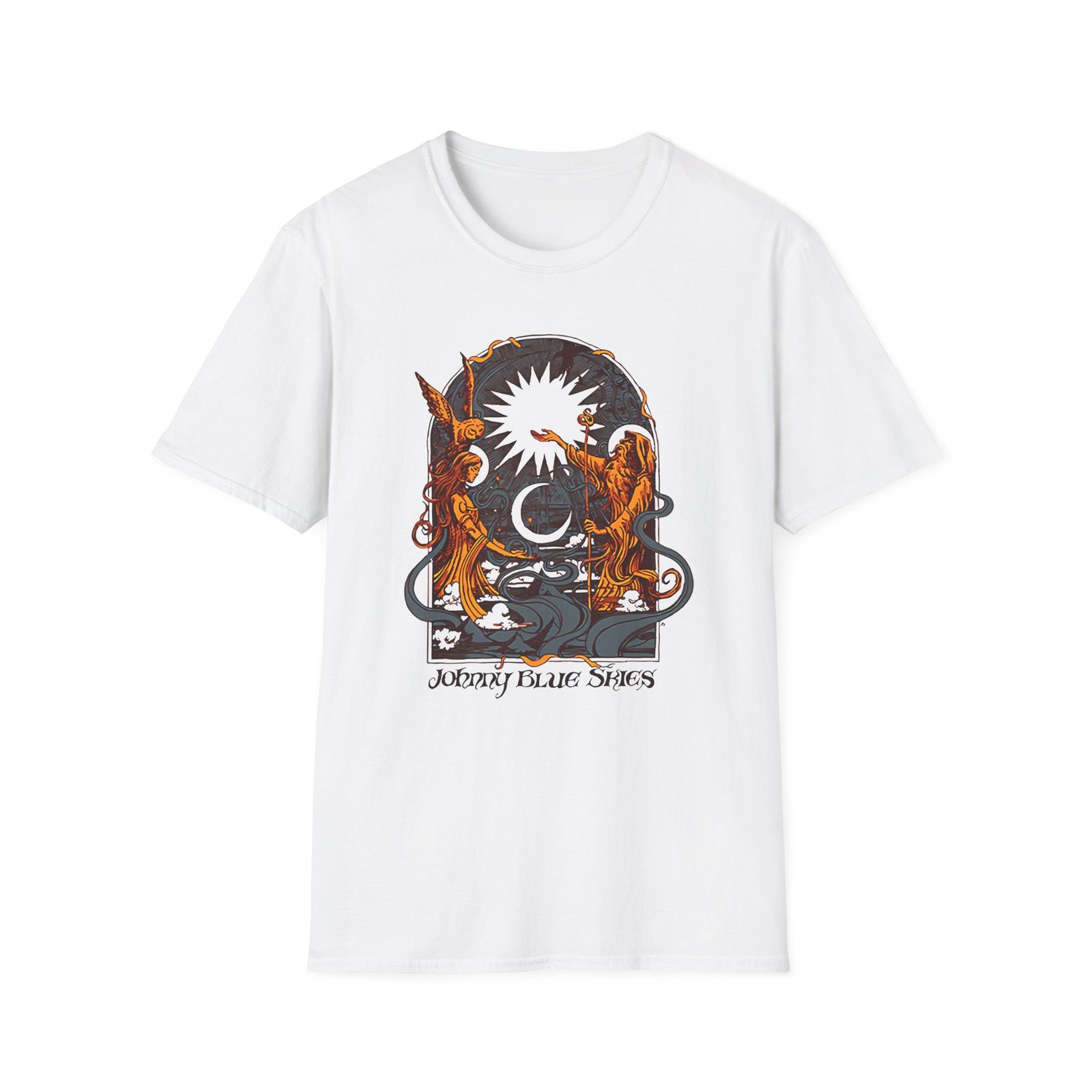 The Sturgill Simpson Magic Offering Tour unisex soft-style t-shirt puts a new spin on casual comfort. Made from very soft materials, this tee is 100% cotton for solid colors. Heather colors and sports grey include polyester. The shoulders have twill tape for improved durability. There are no side seams. The collar is made with ribbed knitting to prevent curling damage.