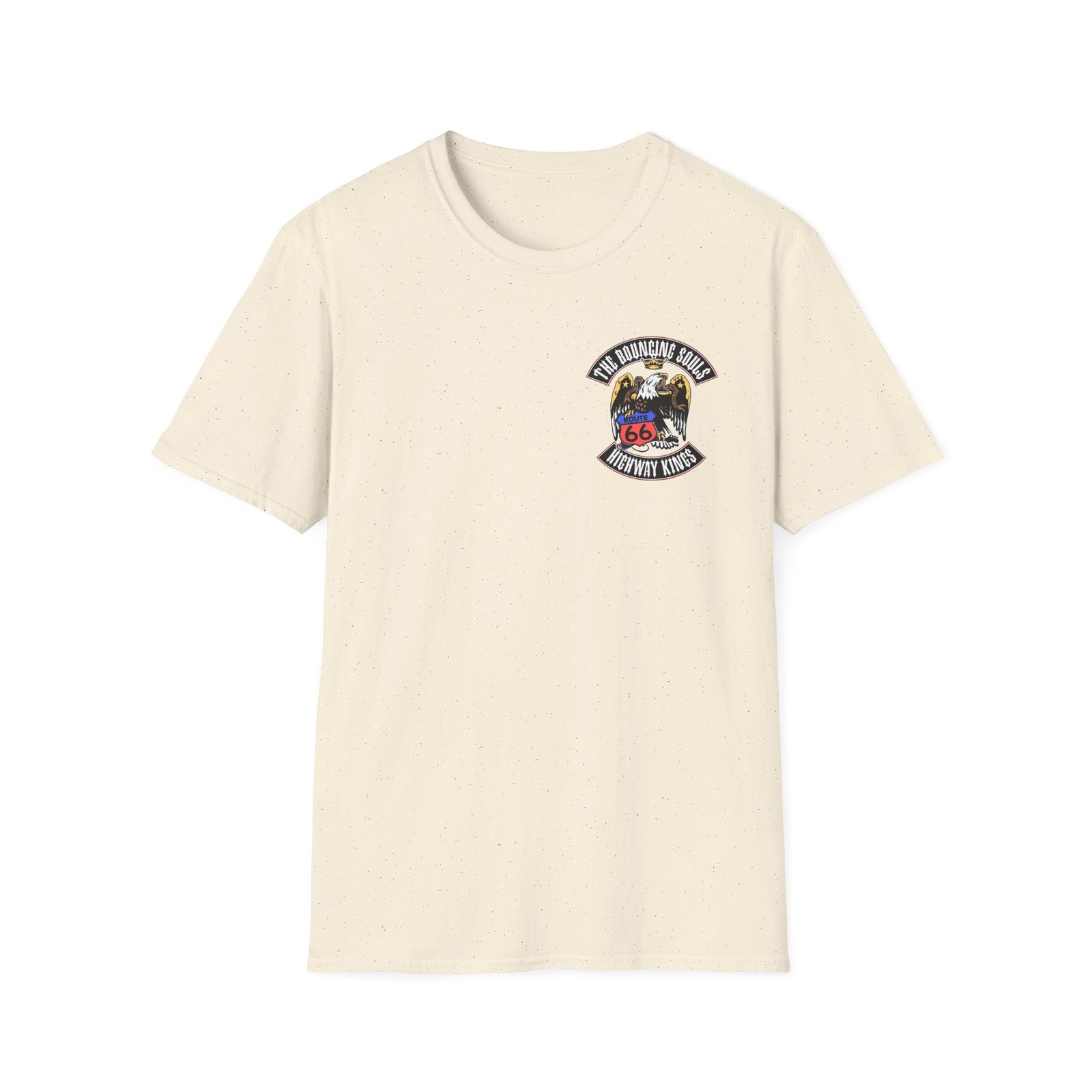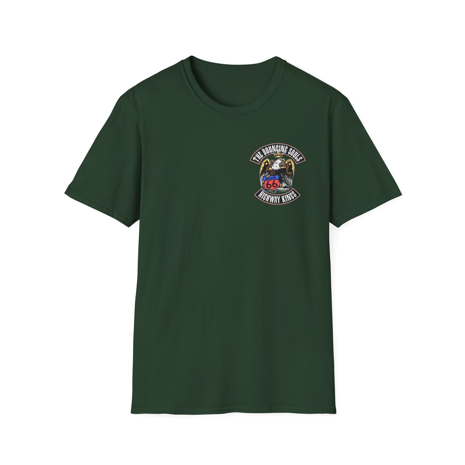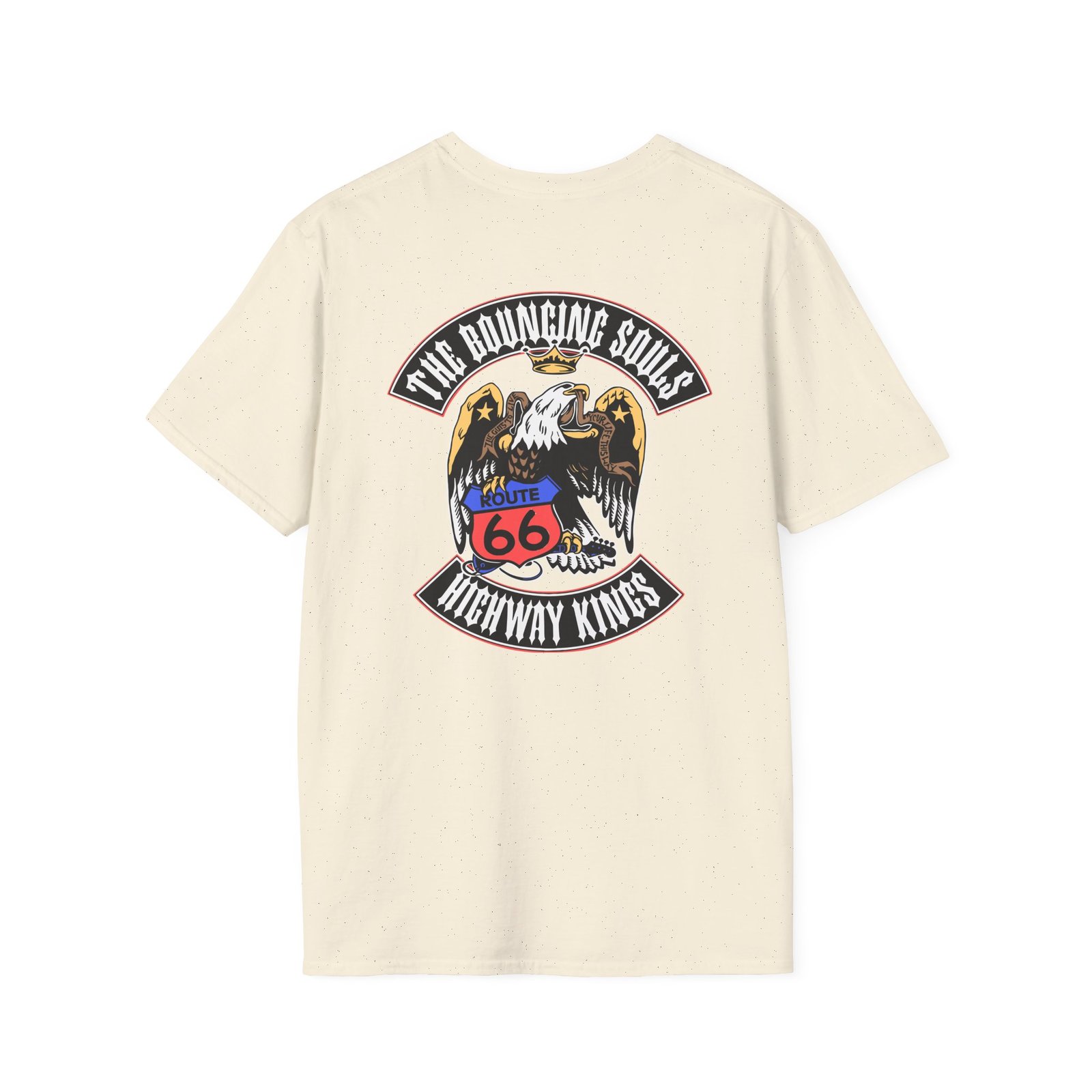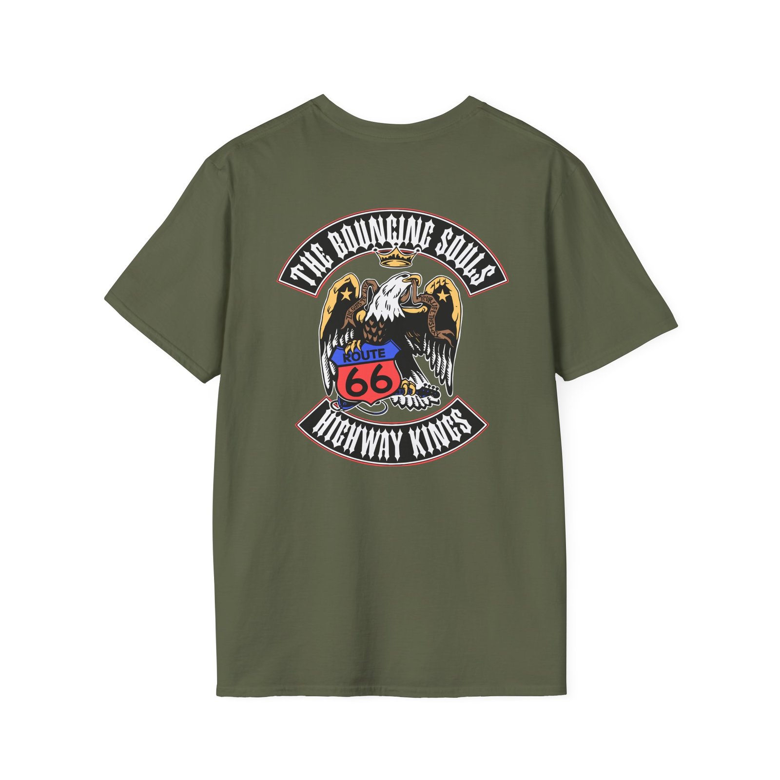 The The Bouncing Souls Highway Kings unisex soft-style t-shirt puts a new spin on casual comfort. Made from very soft materials, this tee is 100% cotton for solid colors. Heather colors and sports grey include polyester. The shoulders have twill tape for improved durability. There are no side seams. The collar is made with ribbed knitting to prevent curling damage.