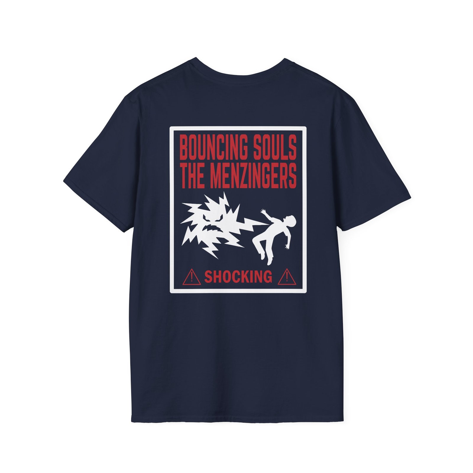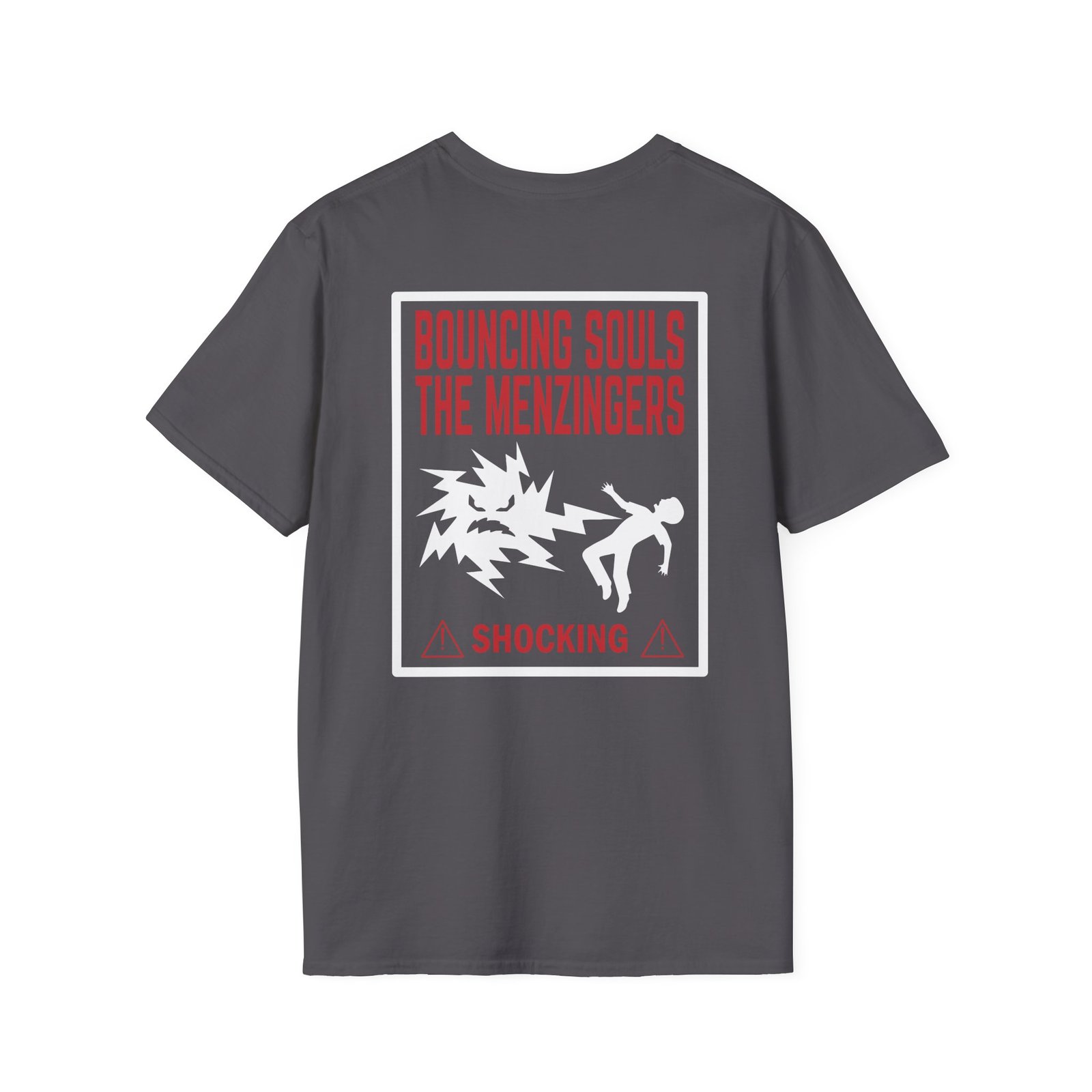 The The Bouncing Souls Shocking unisex soft-style t-shirt puts a new spin on casual comfort. Made from very soft materials, this tee is 100% cotton for solid colors. Heather colors and sports grey include polyester. The shoulders have twill tape for improved durability. There are no side seams. The collar is made with ribbed knitting to prevent curling damage.