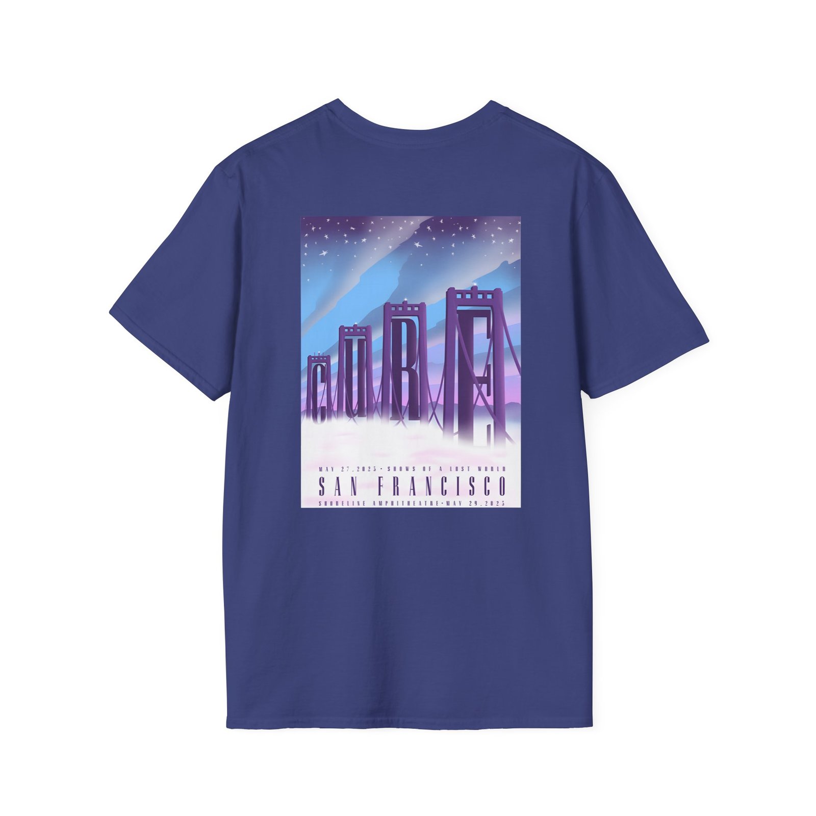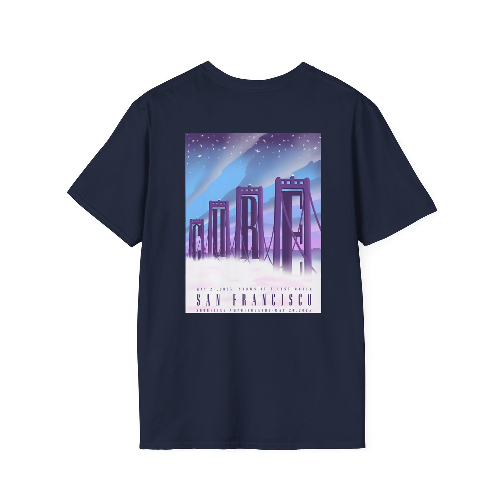The The Cure San Francisco Night 1 Event Unisex Softstyle T-Shirt puts a new spin on casual comfort. Made from very soft materials, this tee is 100% cotton for solid colors. Heather colors and sports grey include polyester. The shoulders have twill tape for improved durability. There are no side seams. The collar is made with ribbed knitting to prevent curling damage.