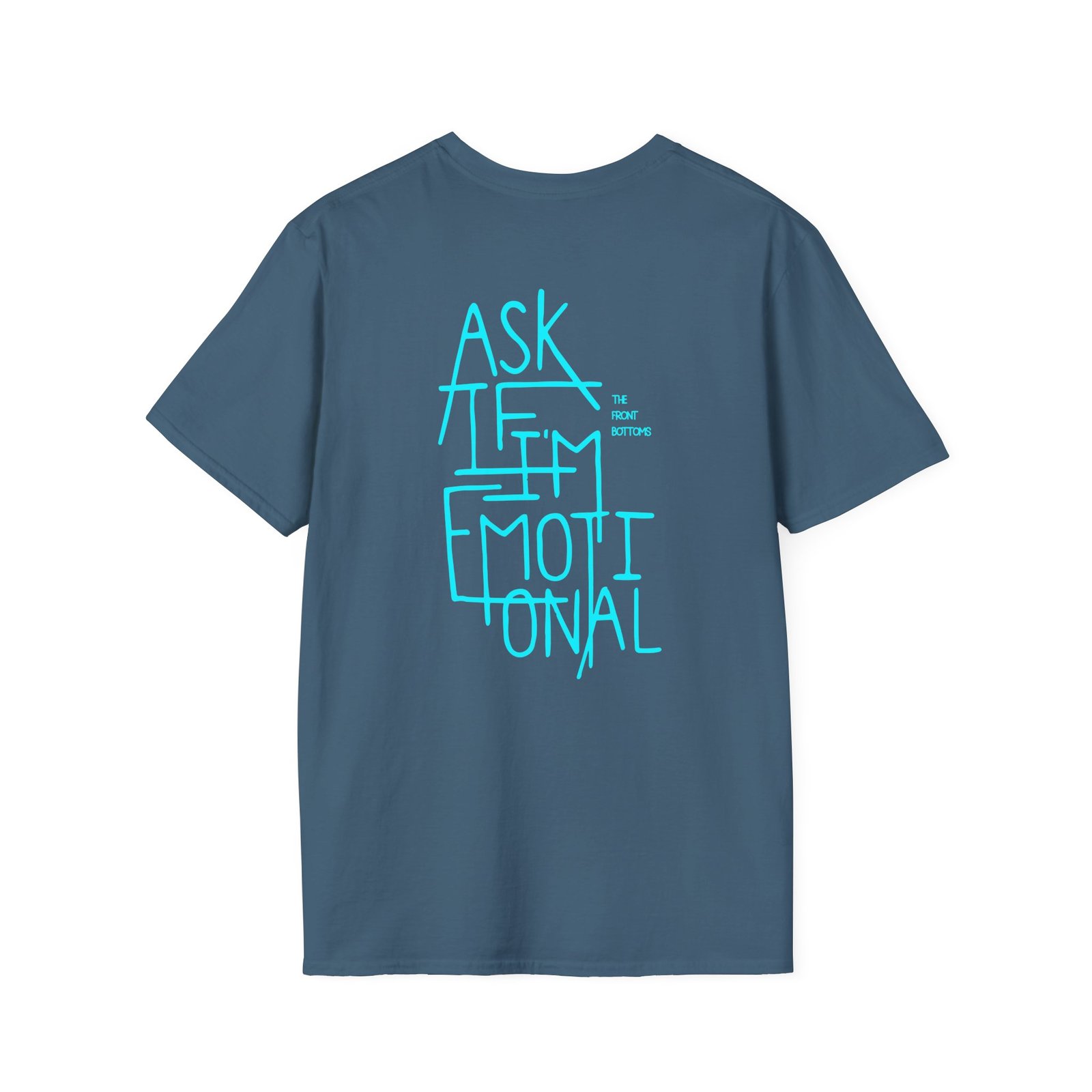 The The Front Bottoms Emotional Unisex Softstyle T-Shirt puts a new spin on casual comfort. Made from very soft materials, this tee is 100% cotton for solid colors. Heather colors and sports grey include polyester. The shoulders have twill tape for improved durability. There are no side seams. The collar is made with ribbed knitting to prevent curling damage.