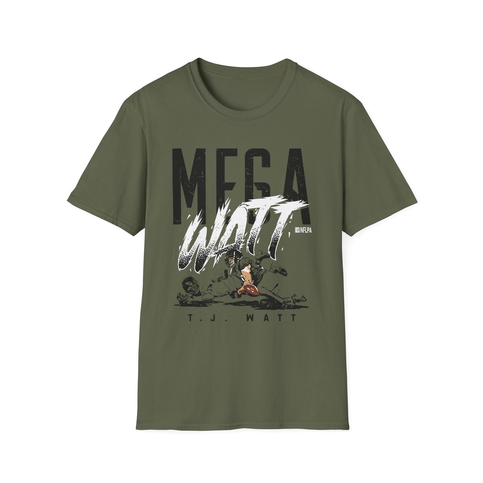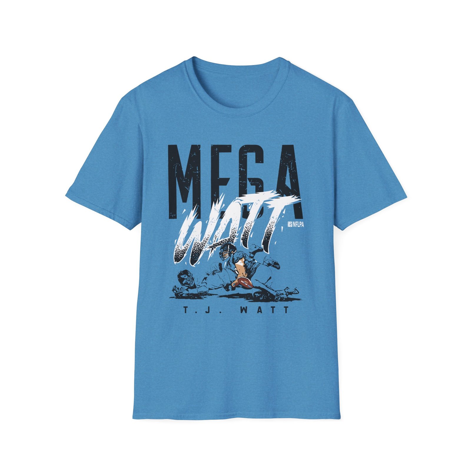 The Tj Watt Mega Watt unisex soft-style t-shirt puts a new spin on casual comfort. Made from very soft materials, this tee is 100% cotton for solid colors. Heather colors and sports grey include polyester. The shoulders have twill tape for improved durability. There are no side seams. The collar is made with ribbed knitting to prevent curling damage.