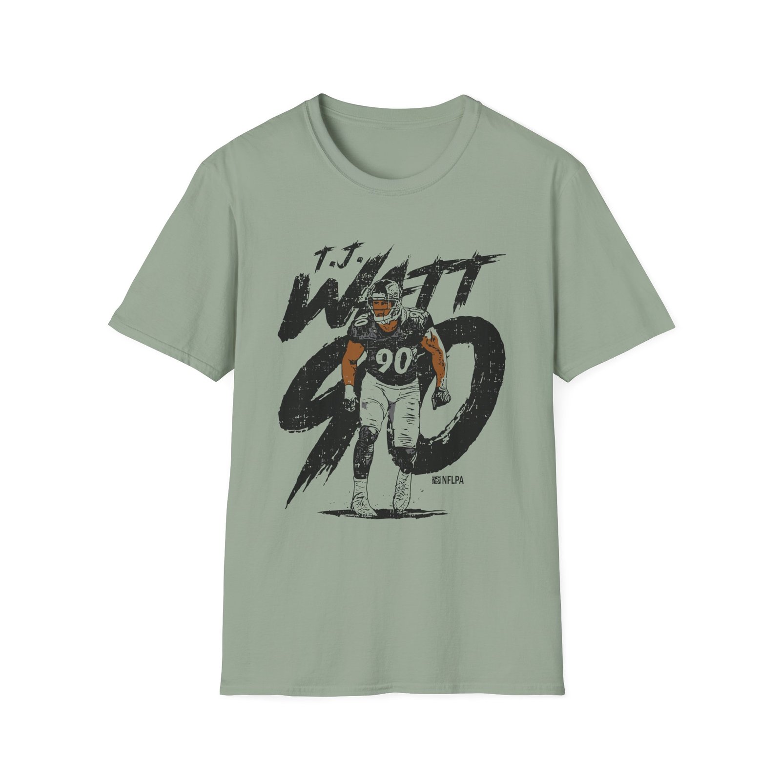 The Tj Watt Rough unisex soft-style t-shirt puts a new spin on casual comfort. Made from very soft materials, this tee is 100% cotton for solid colors. Heather colors and sports grey include polyester. The shoulders have twill tape for improved durability. There are no side seams. The collar is made with ribbed knitting to prevent curling damage.