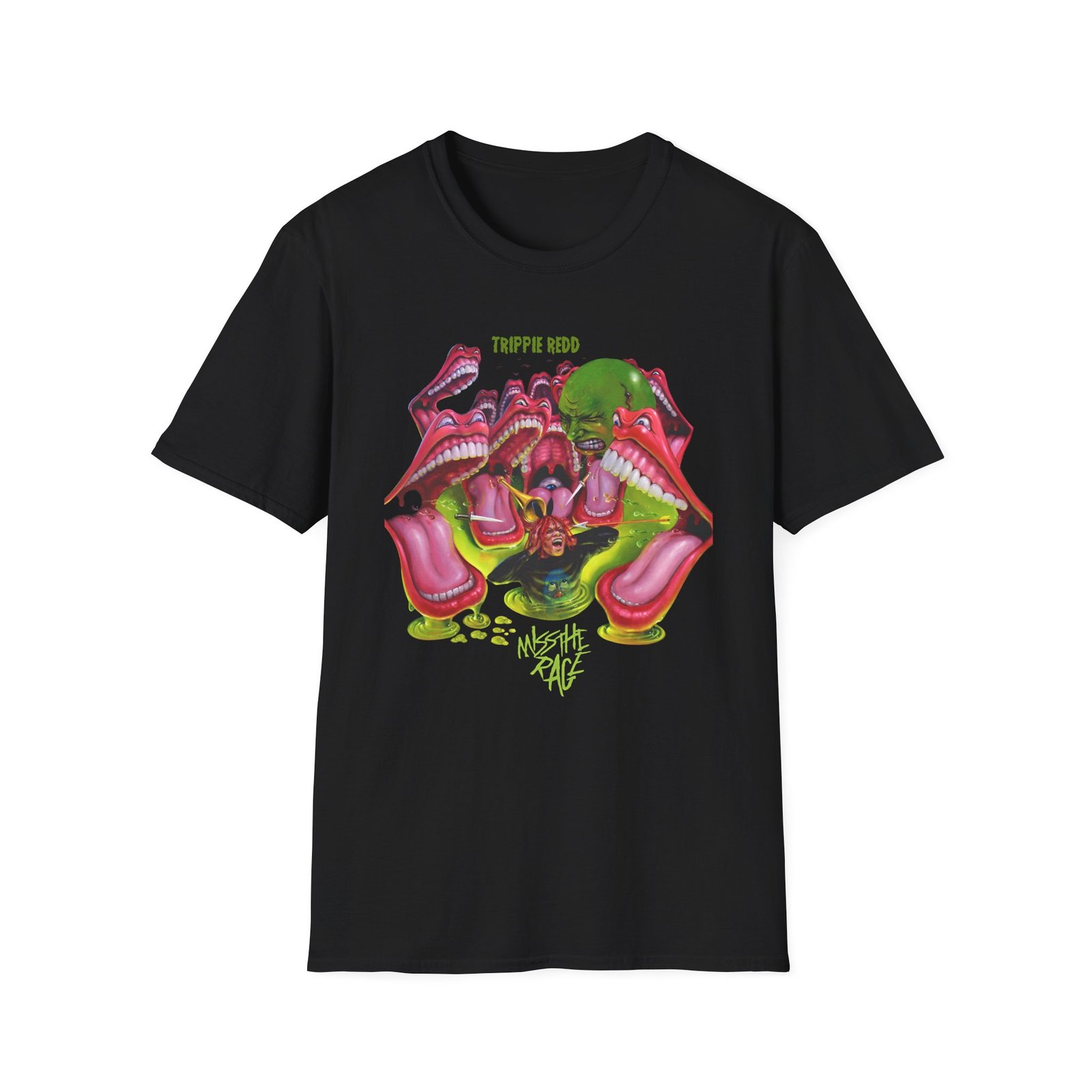 The Trippie Redd Miss The Rage unisex soft-style t-shirt puts a new spin on casual comfort. Made from very soft materials, this tee is 100% cotton for solid colors. Heather colors and sports grey include polyester. The shoulders have twill tape for improved durability. There are no side seams. The collar is made with ribbed knitting to prevent curling damage.