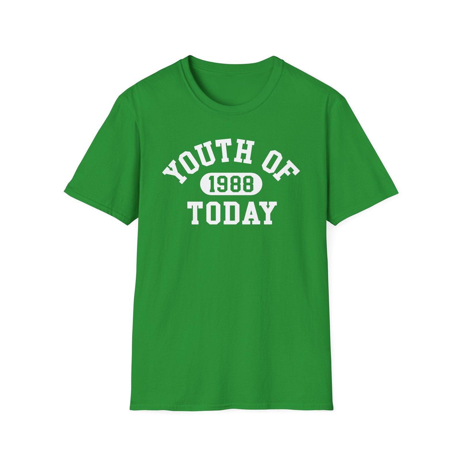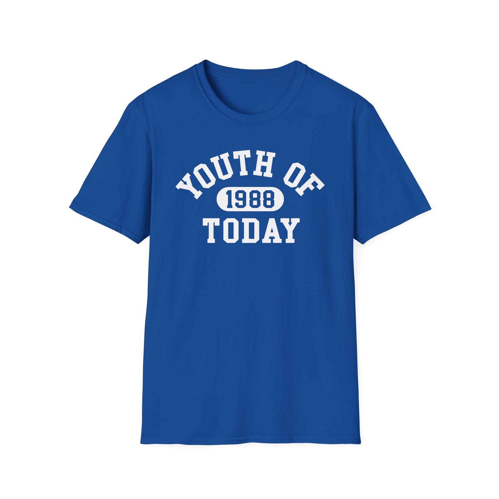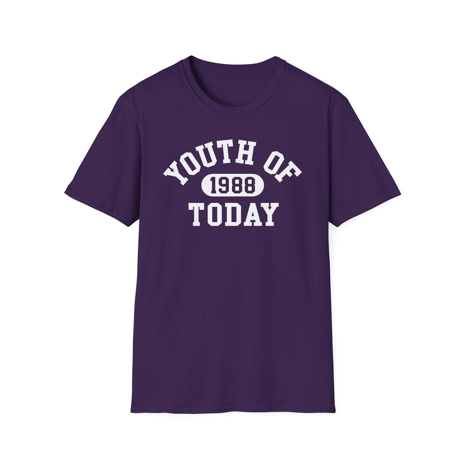 The Youth of Today 1988 Unisex Softstyle T-Shirt puts a new spin on casual comfort. Made from very soft materials, this tee is 100% cotton for solid colors. Heather colors and sports grey include polyester. The shoulders have twill tape for improved durability. There are no side seams. The collar is made with ribbed knitting to prevent curling damage.