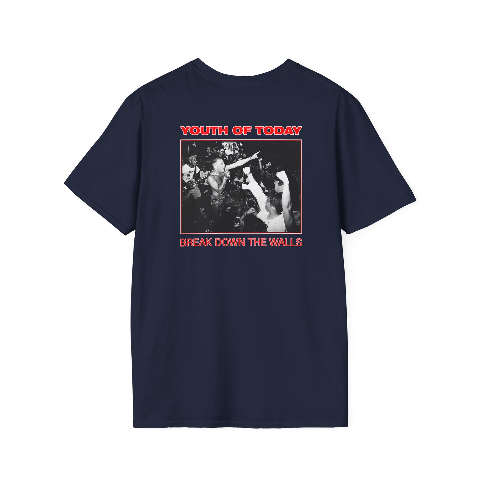The Youth of Today Break Down The Walls Unisex Softstyle T-Shirt puts a new spin on casual comfort. Made from very soft materials, this tee is 100% cotton for solid colors. Heather colors and sports grey include polyester. The shoulders have twill tape for improved durability. There are no side seams. The collar is made with ribbed knitting to prevent curling damage.