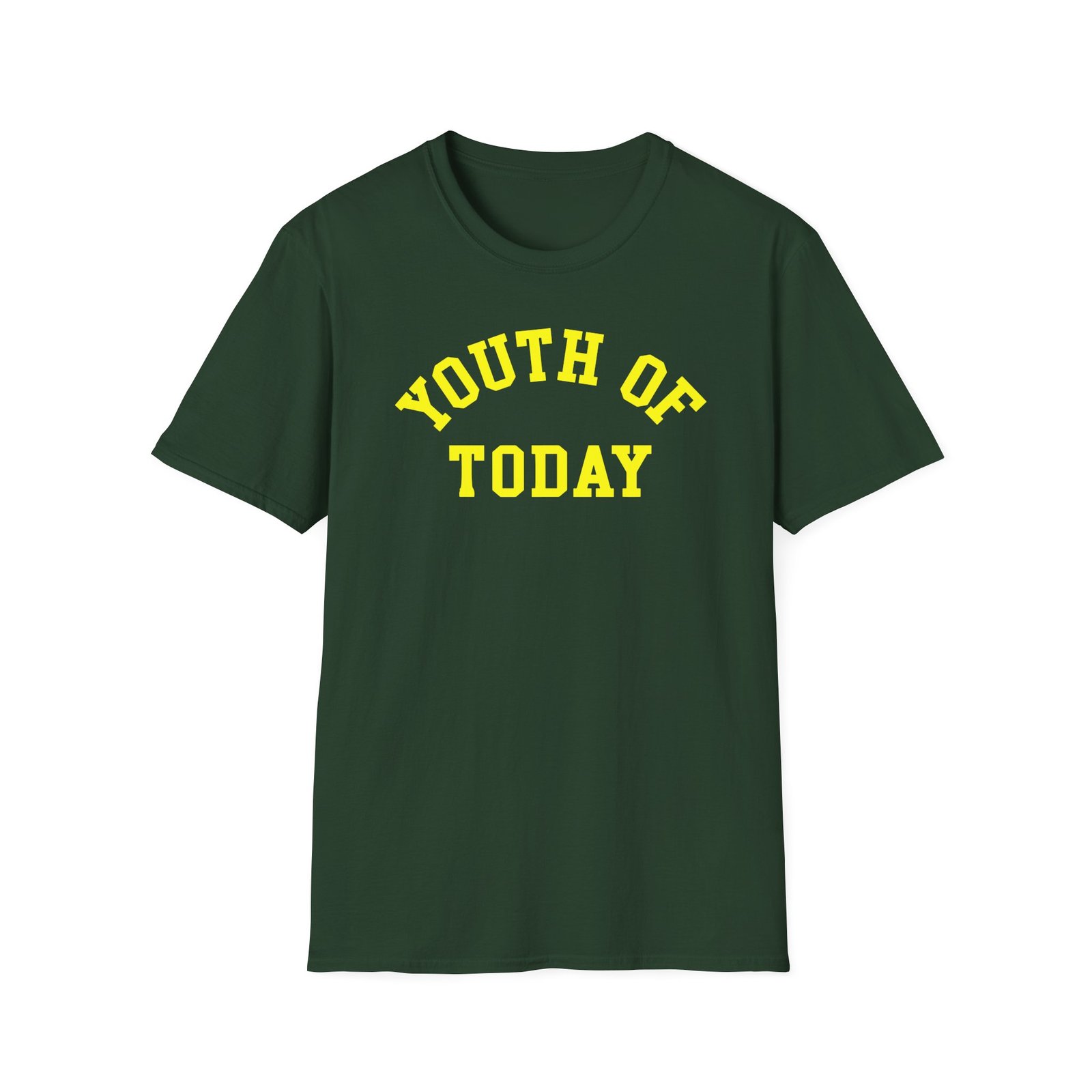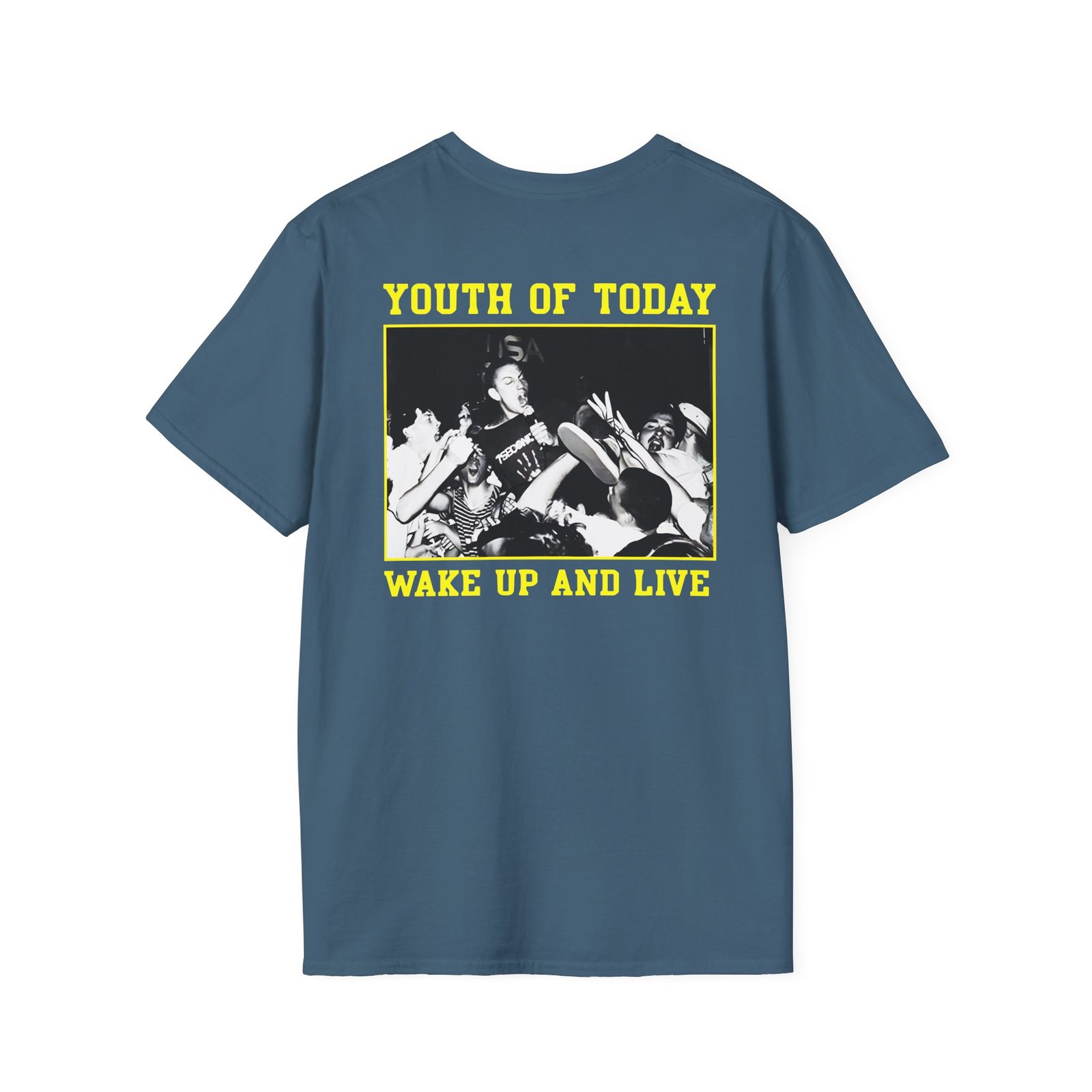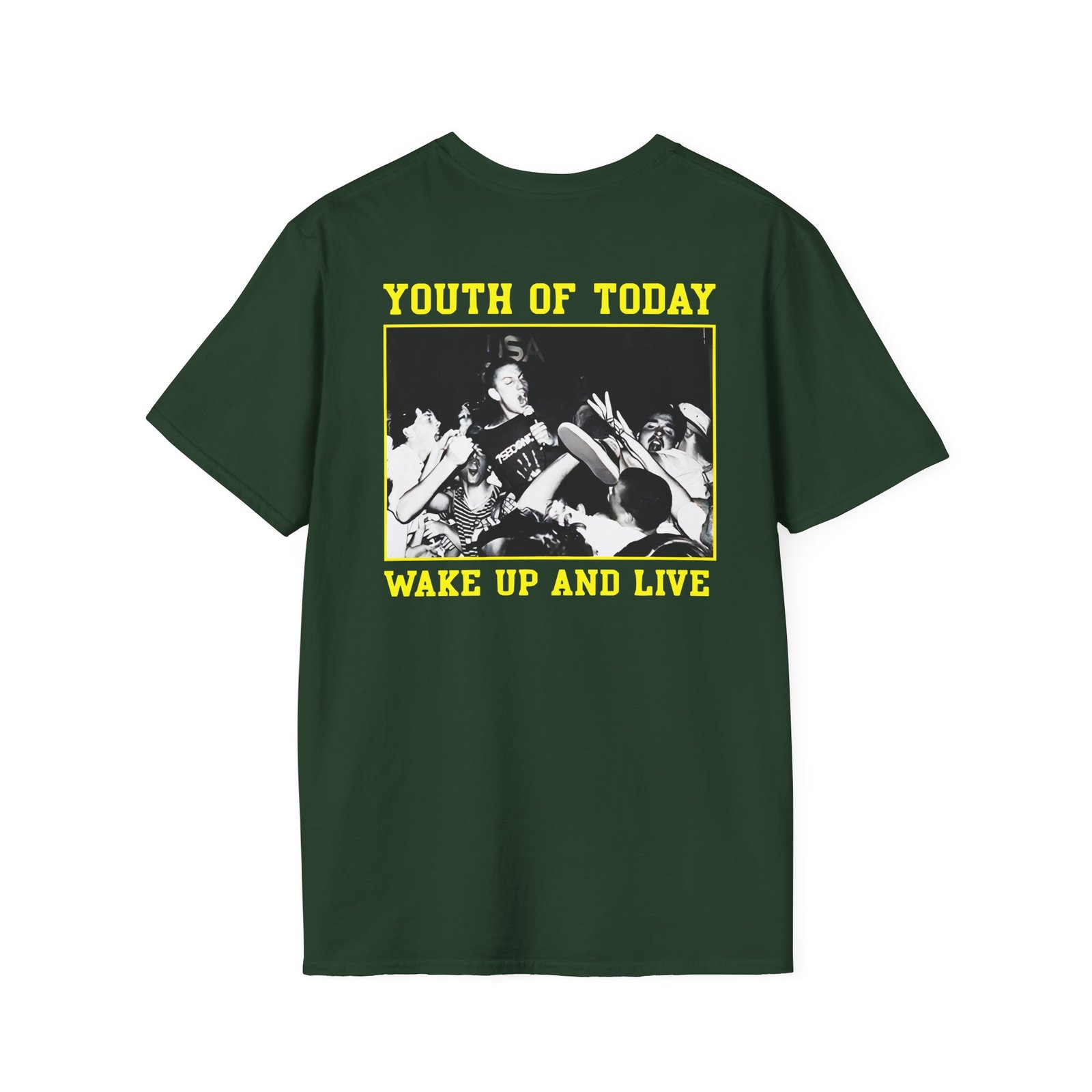 The Youth of Today Wake Up And Live Unisex Softstyle T-Shirt puts a new spin on casual comfort. Made from very soft materials, this tee is 100% cotton for solid colors. Heather colors and sports grey include polyester. The shoulders have twill tape for improved durability. There are no side seams. The collar is made with ribbed knitting to prevent curling damage.